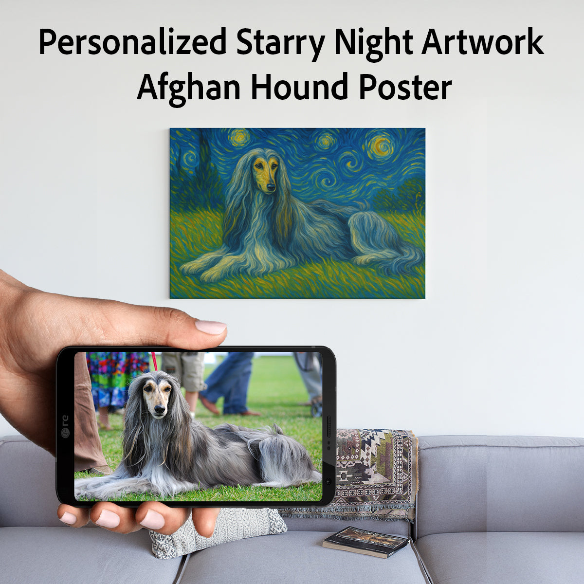 Personalized Starry Night Artwork Afghan Hound Pre-framed Canvas Poster