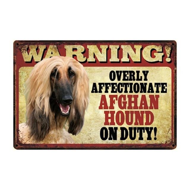 Warning Overly Affectionate Dogs on Duty - Tin Poster - Series 3Home DecorAfghan HoundOne Size