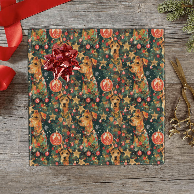 Wrap your holiday gifts in joy with our Tinsel and Airedale Terriers Christmas Gift Wrapping Paper!