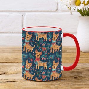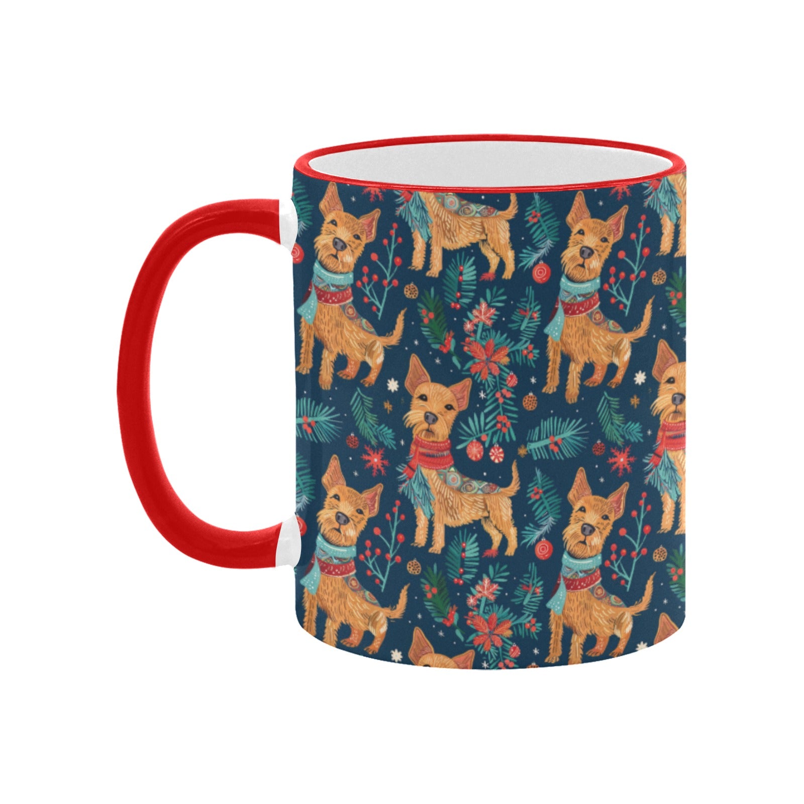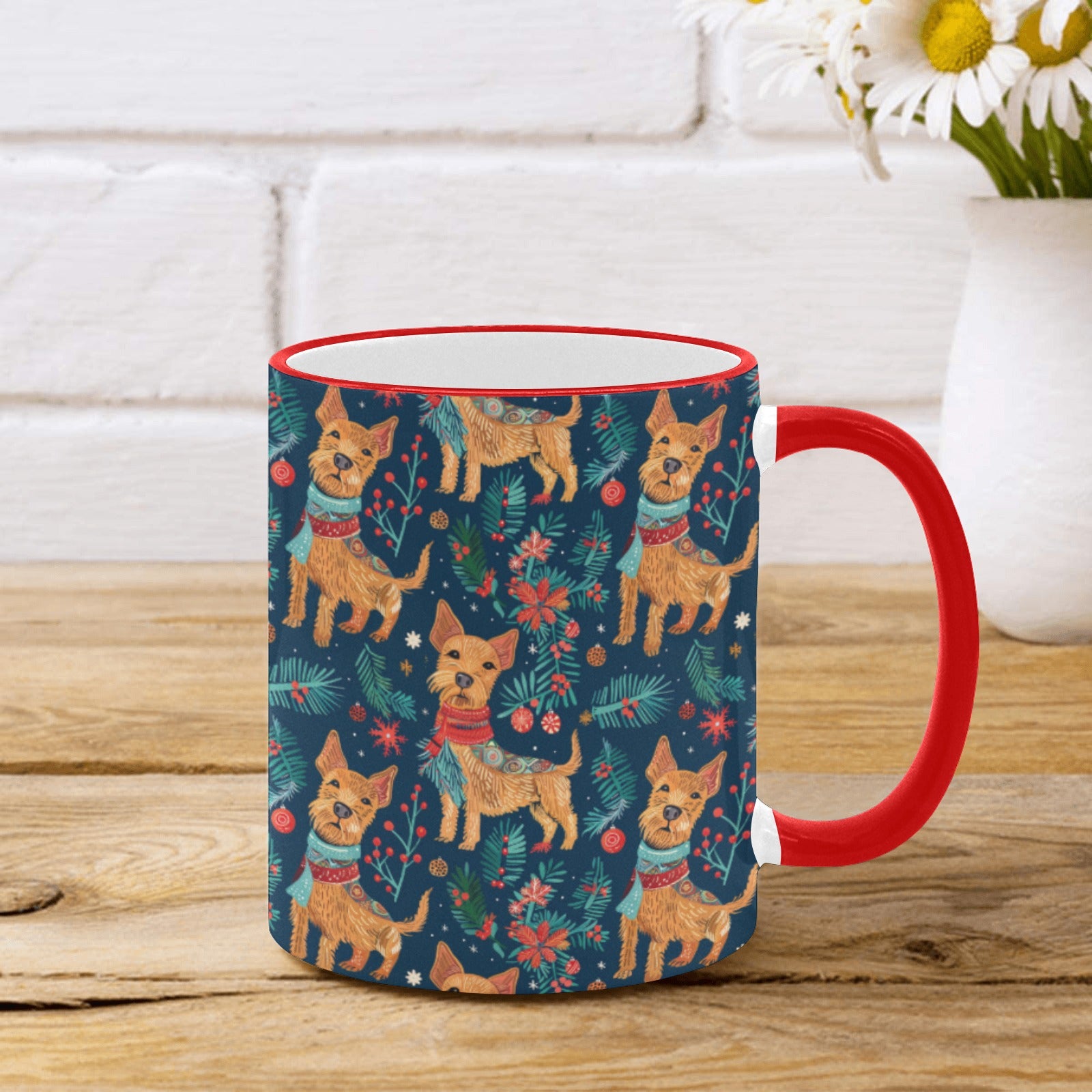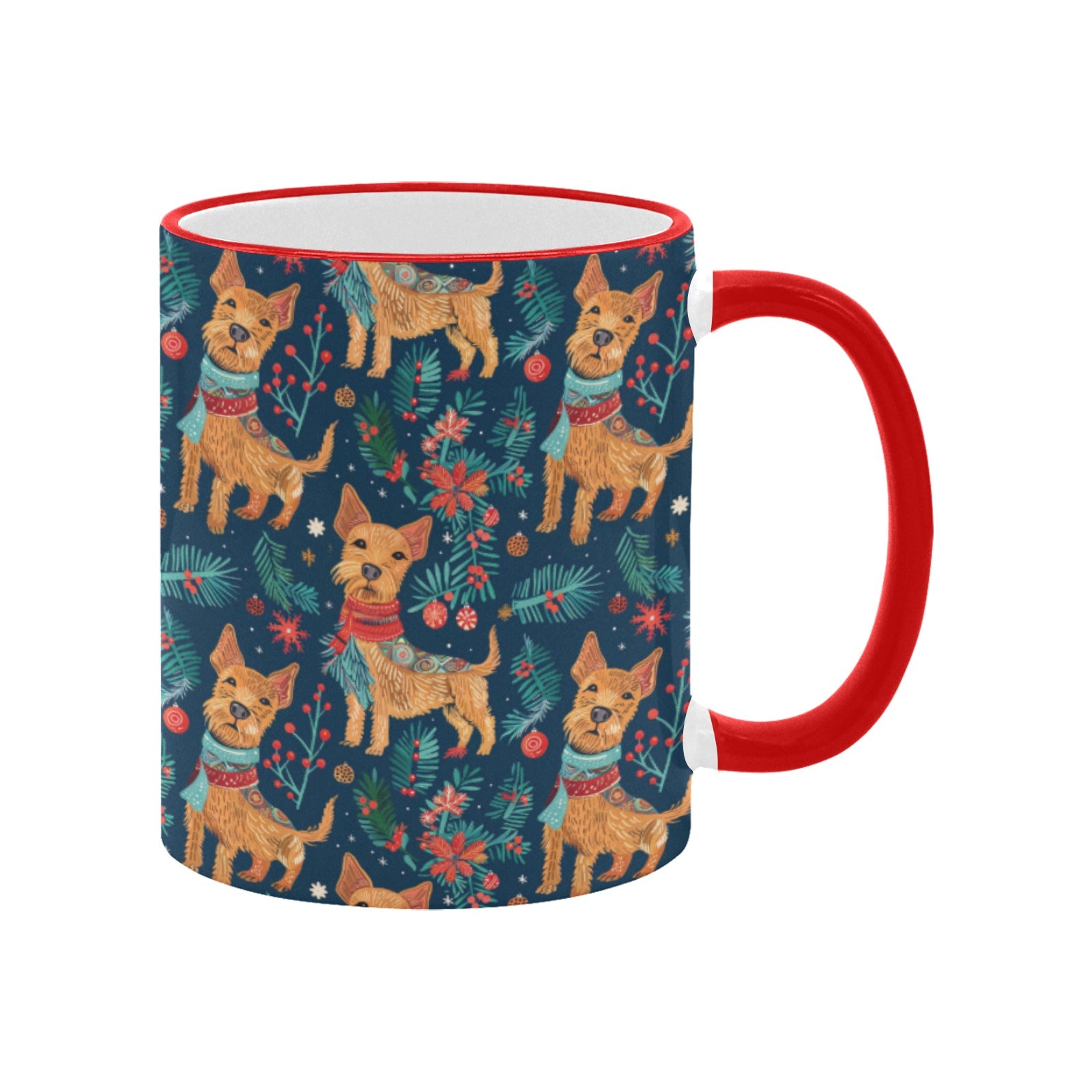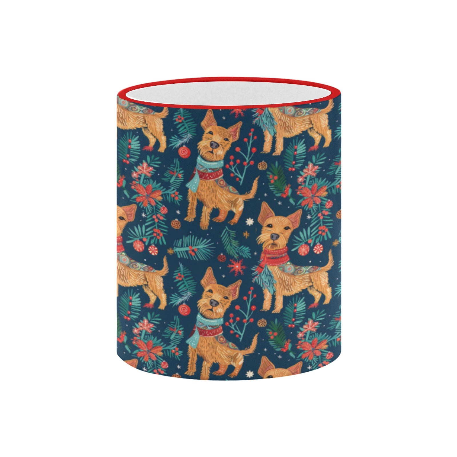 This delightful mug features playful Airedale Terriers dressed in vibrant, festive attire, bringing warmth and cheer to every sip.