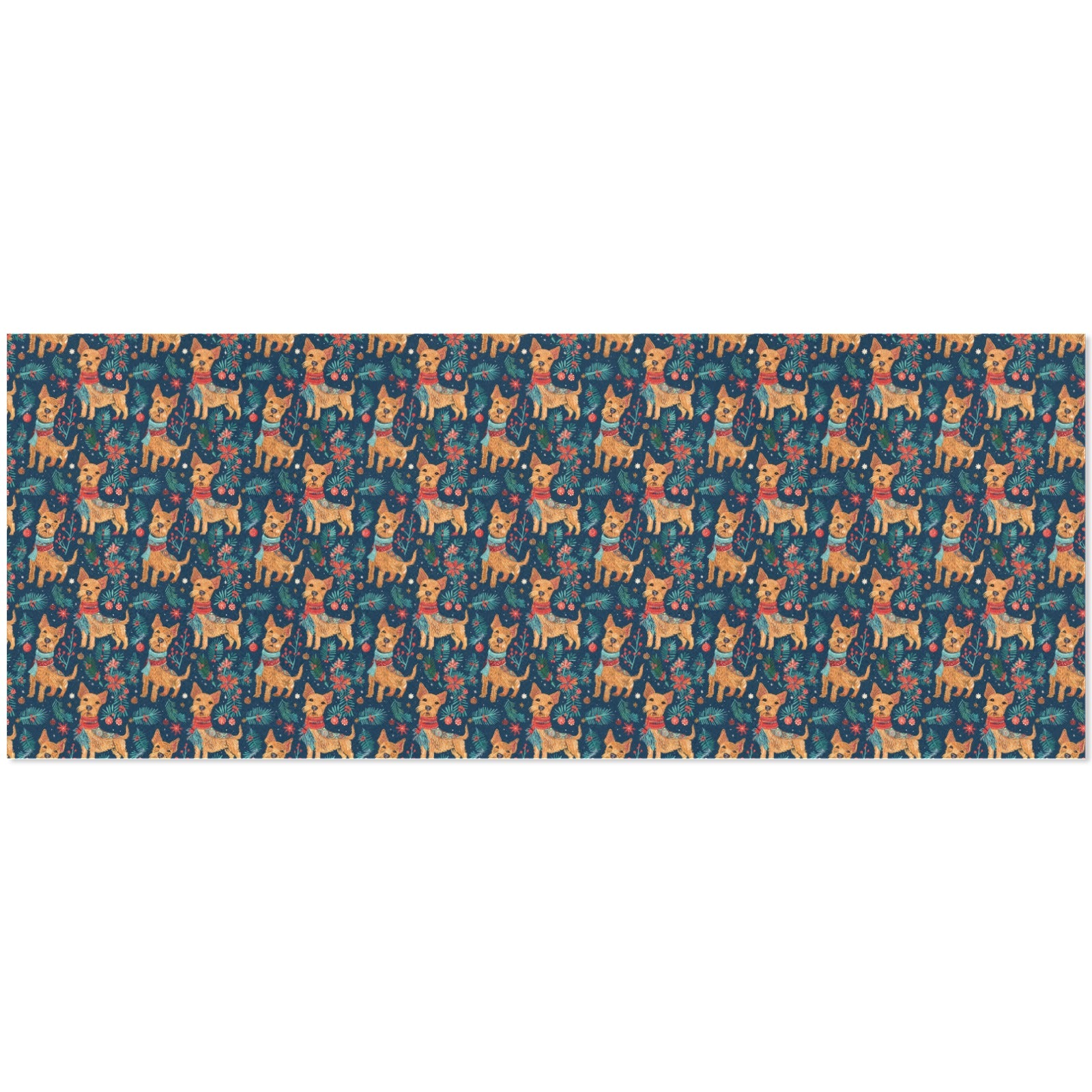 The rich navy blue background beautifully contrasts with bold reds, greens, and winter whites. Each illustration captures the charm of these lovable canines, making your gifts as loyal as your best friend.