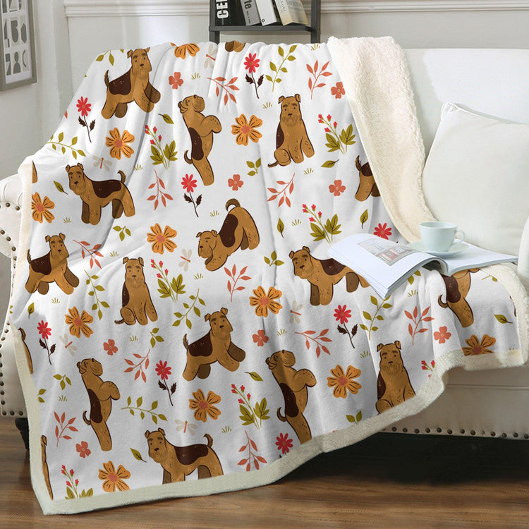 Flower Garden Airedale Terrier Love Soft Warm Fleece Blankets - 4 Colors