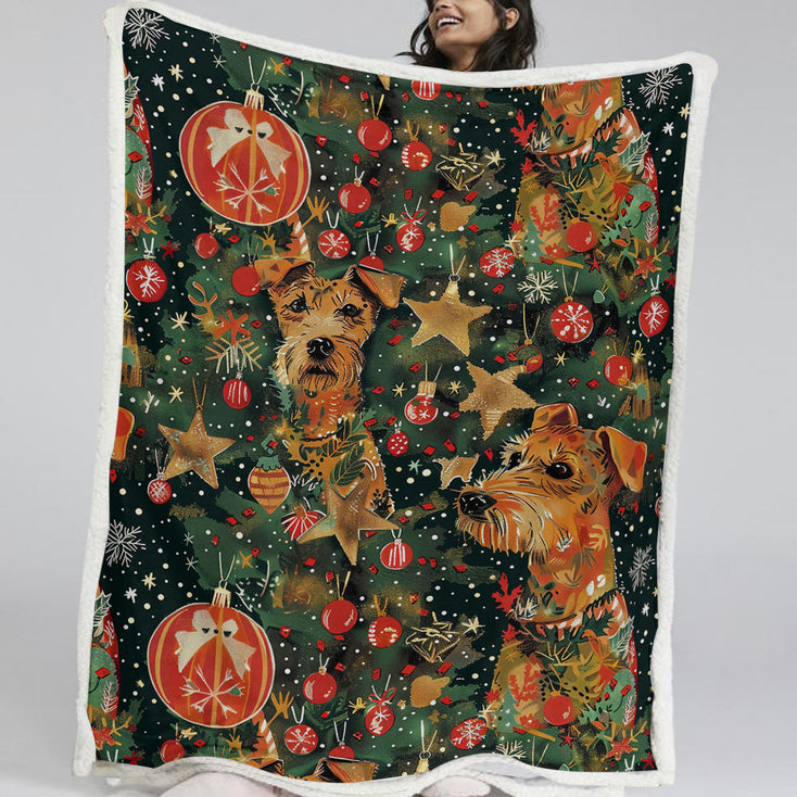 Tinsel and Airedale Terriers Soft Warm Christmas Blanket