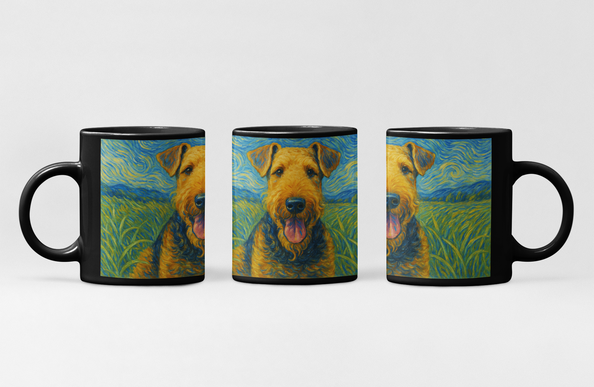 Celebrate your love for your Airedale Terrier with a personalized Starry Night artwork coffee mug that captures the essence of your furry friend. This unique gift is perfect for dog lovers who cherish the bond with their pets.