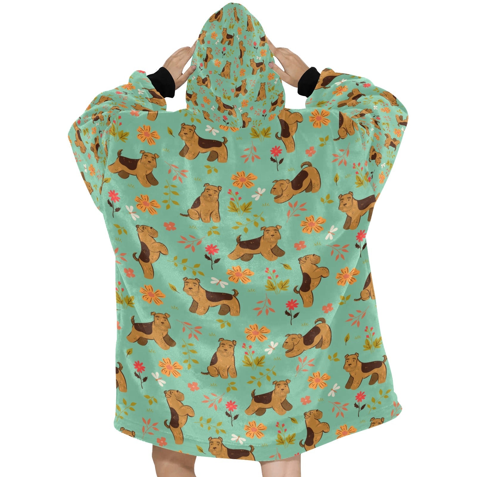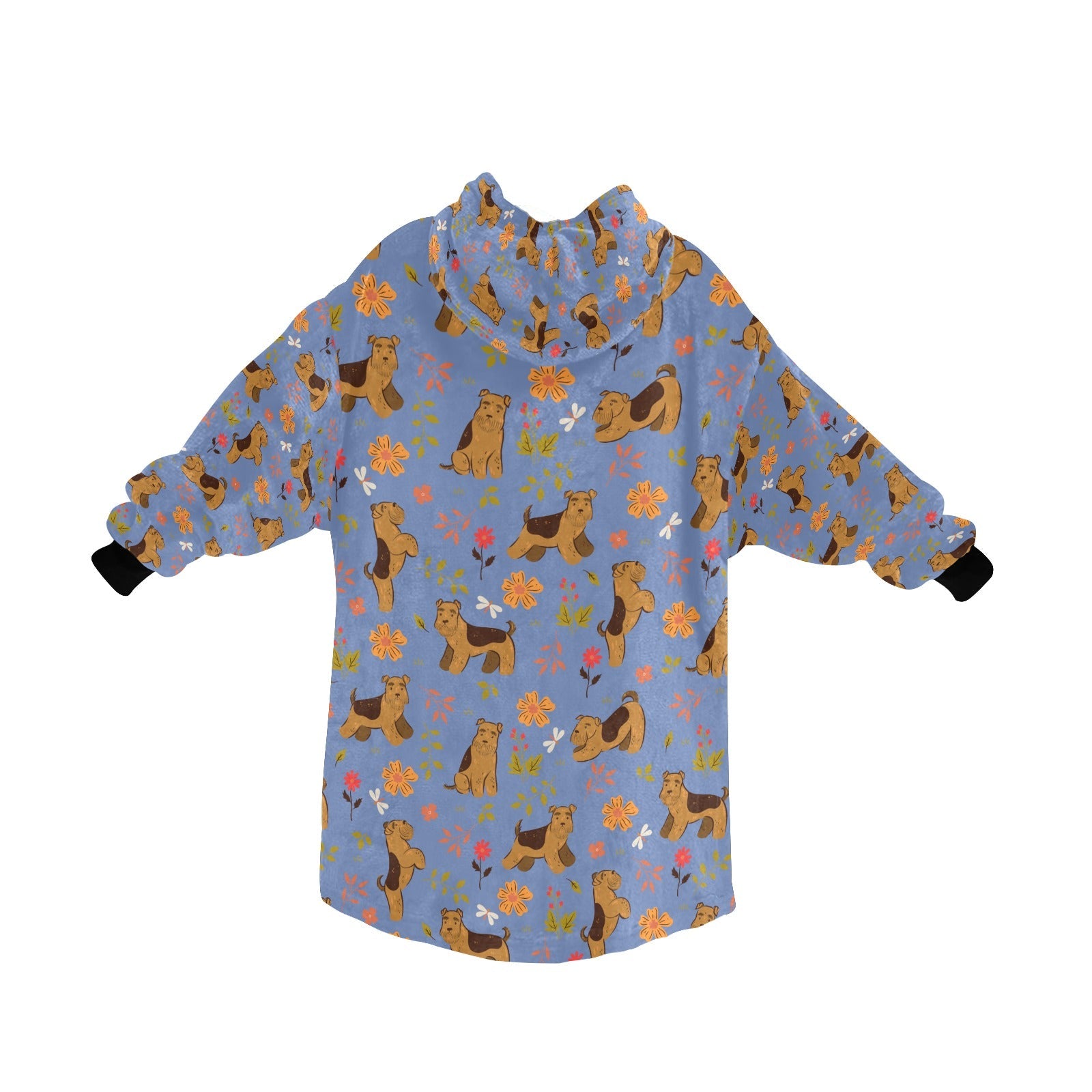 Flower Garden Airedale Terrier Blanket Hoodie-CornflowerBlue_1-ONE SIZE-24
