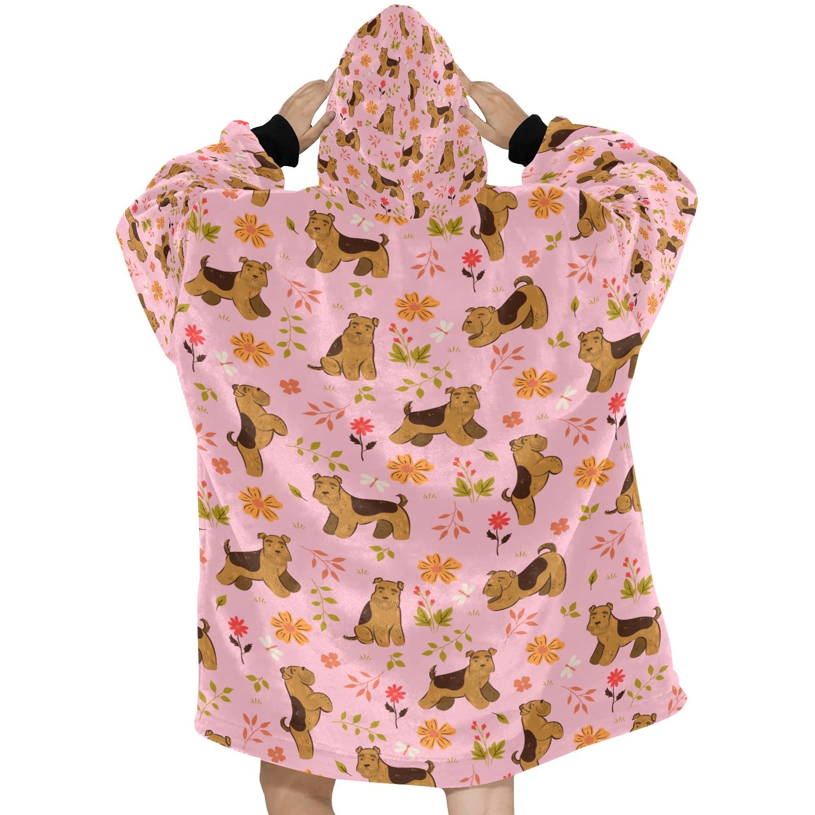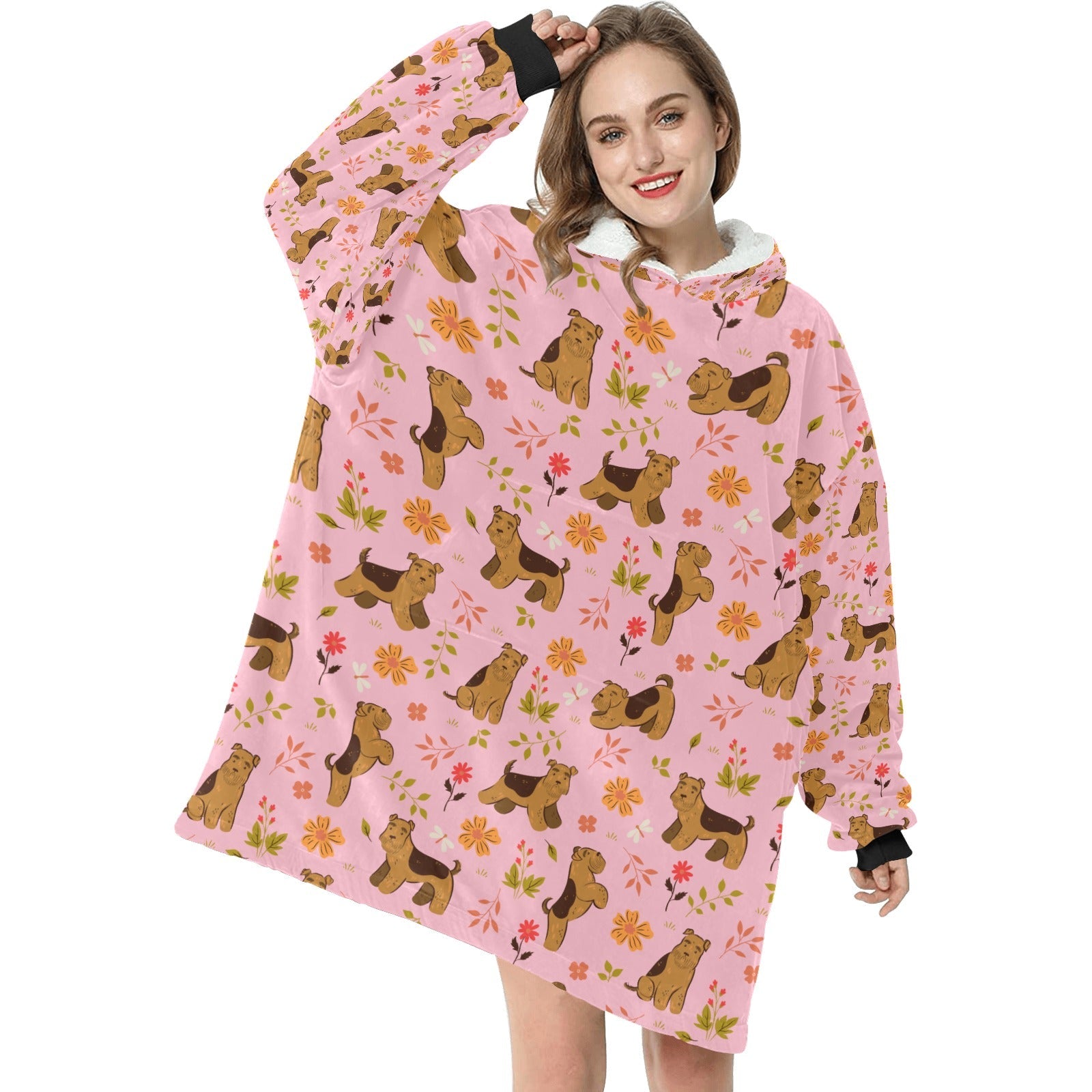 Flower Garden Airedale Terrier Blanket Hoodie-Pink-ONE SIZE-2