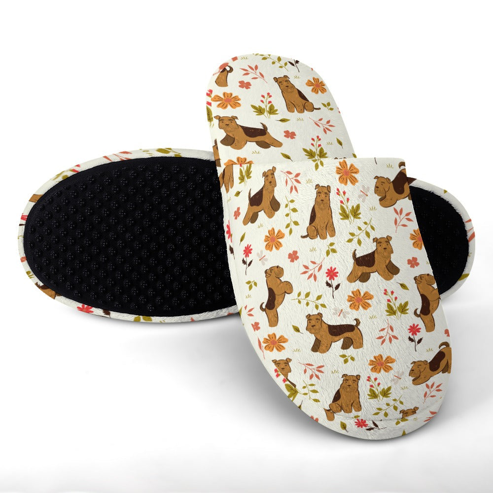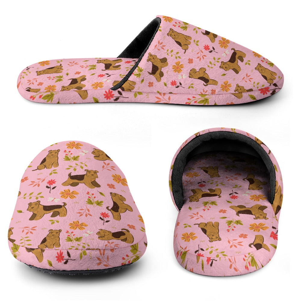 Step into a world of comfort and charm with our Flower Garden Airedale Terrier Women's Cotton Mop Slippers.