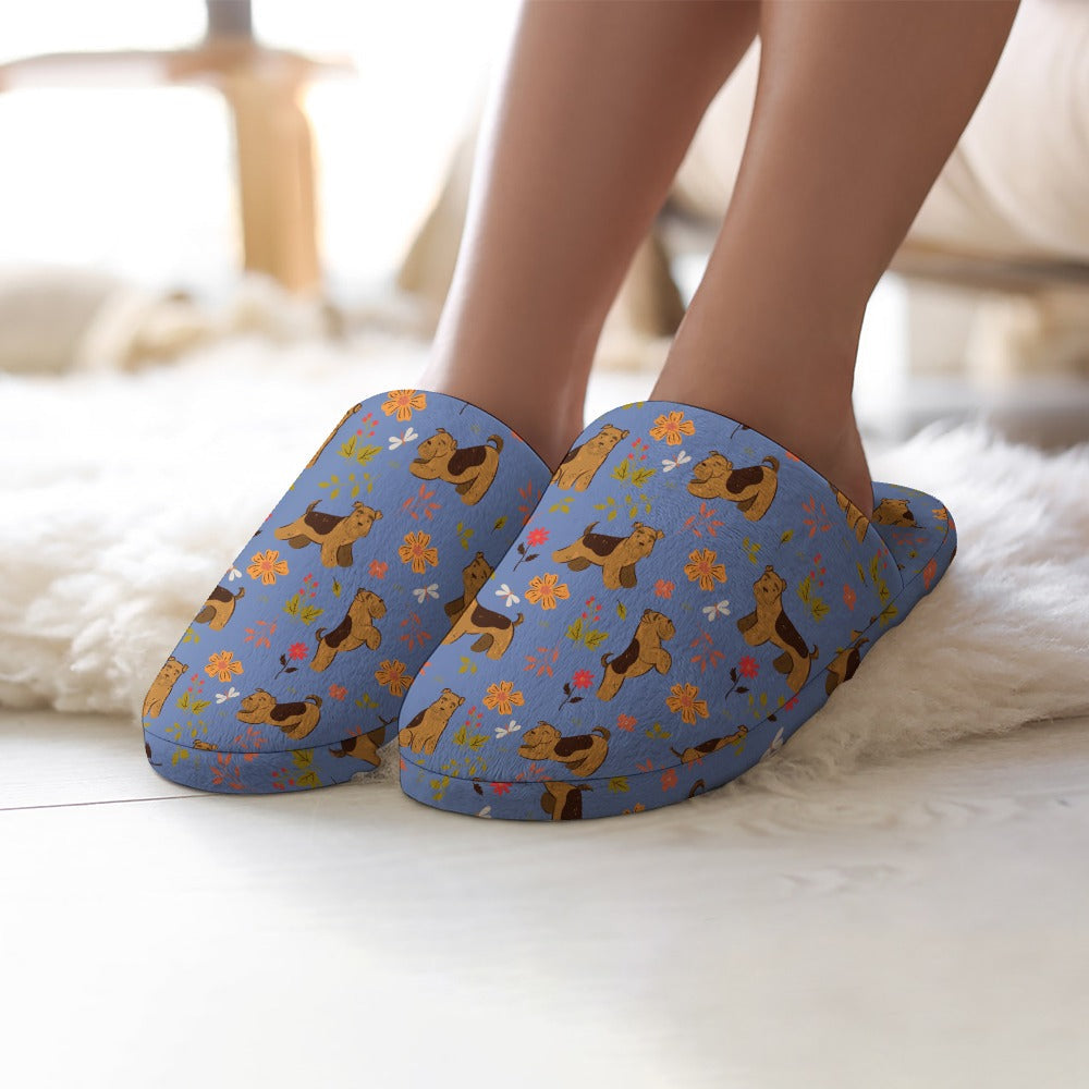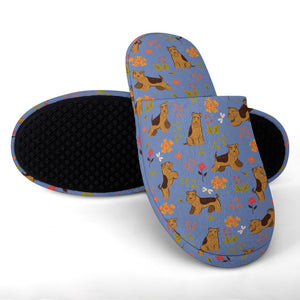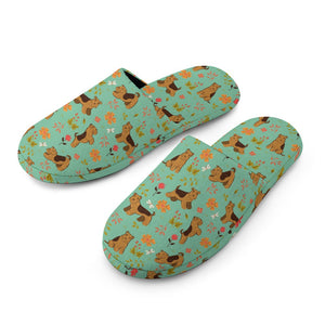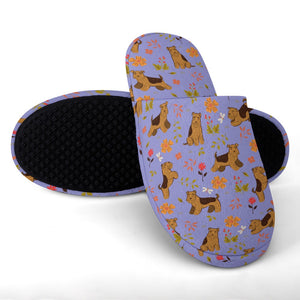 Flower Garden Airedale Terrier Women's Cotton Mop Slippers