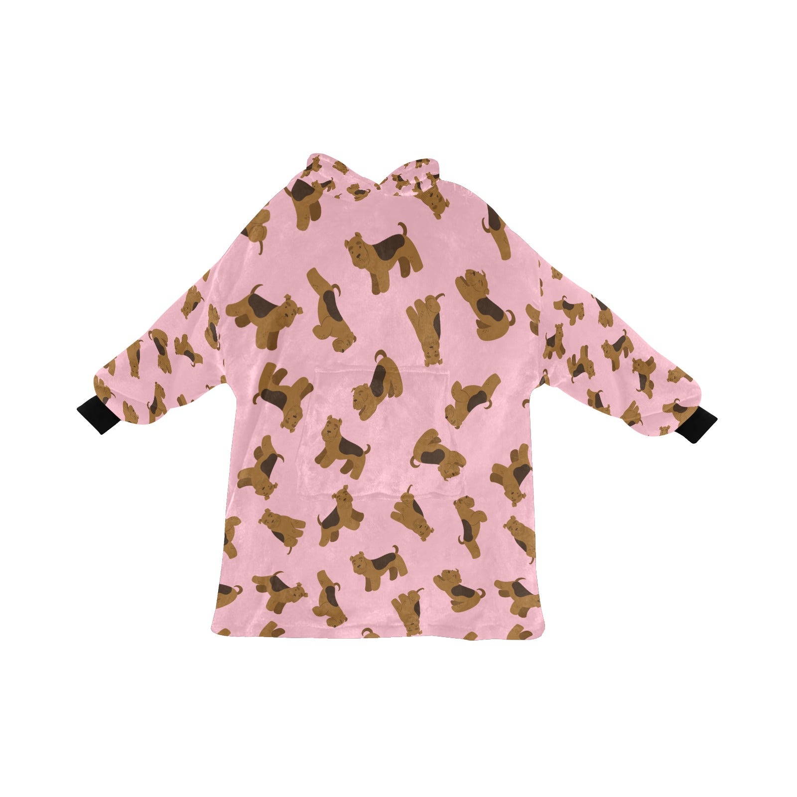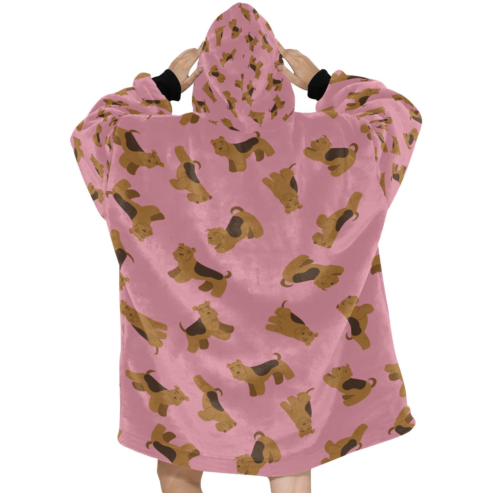 Playful Airedale Terrier Love Blanket Hoodie-Pink-ONE SIZE-2