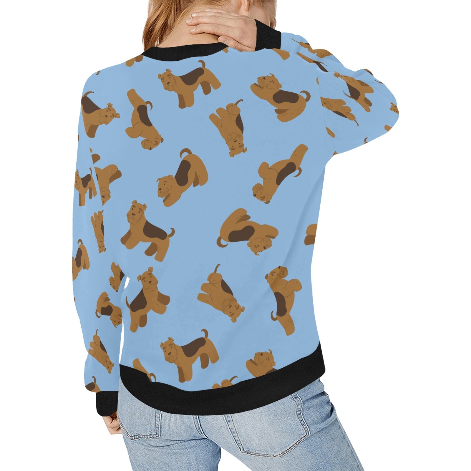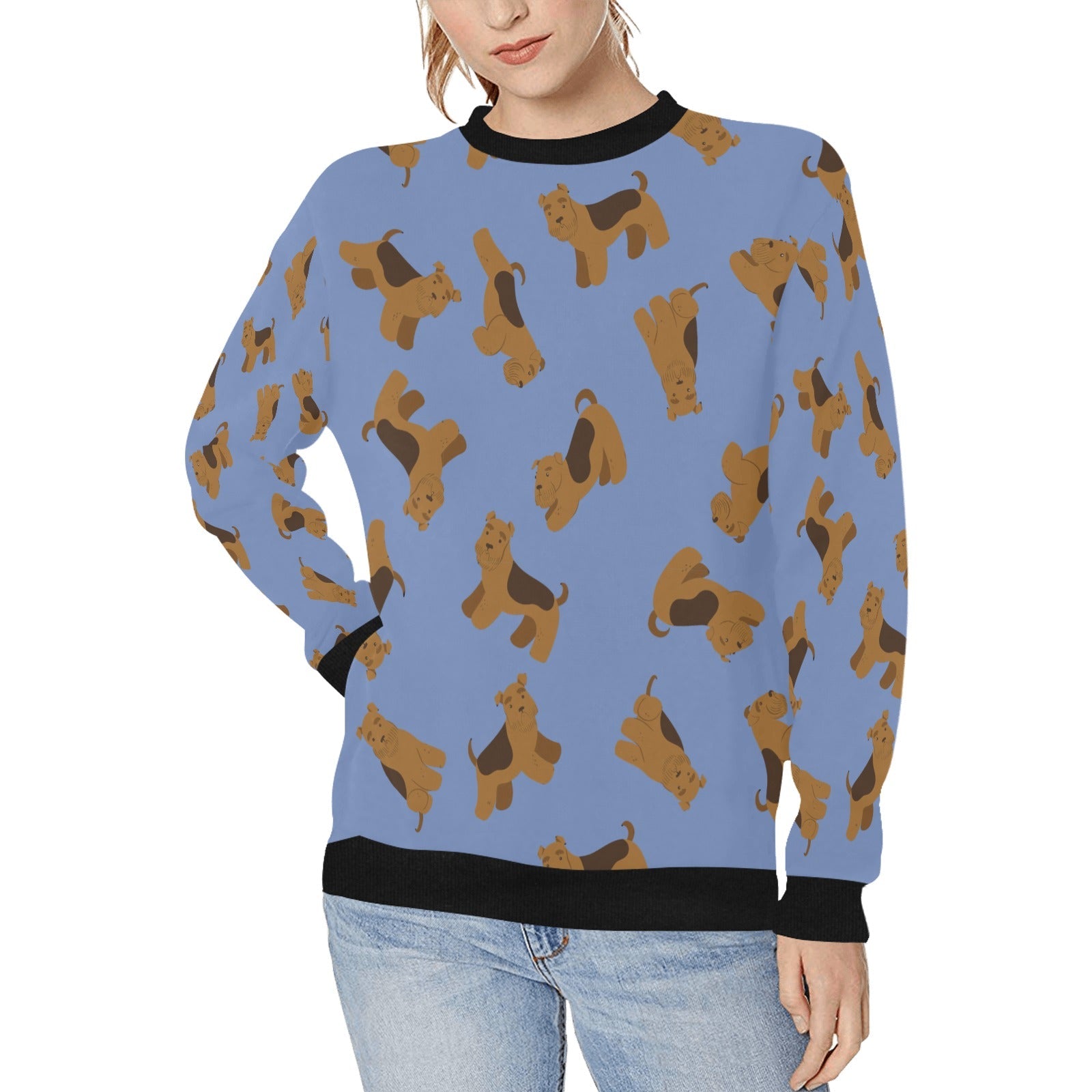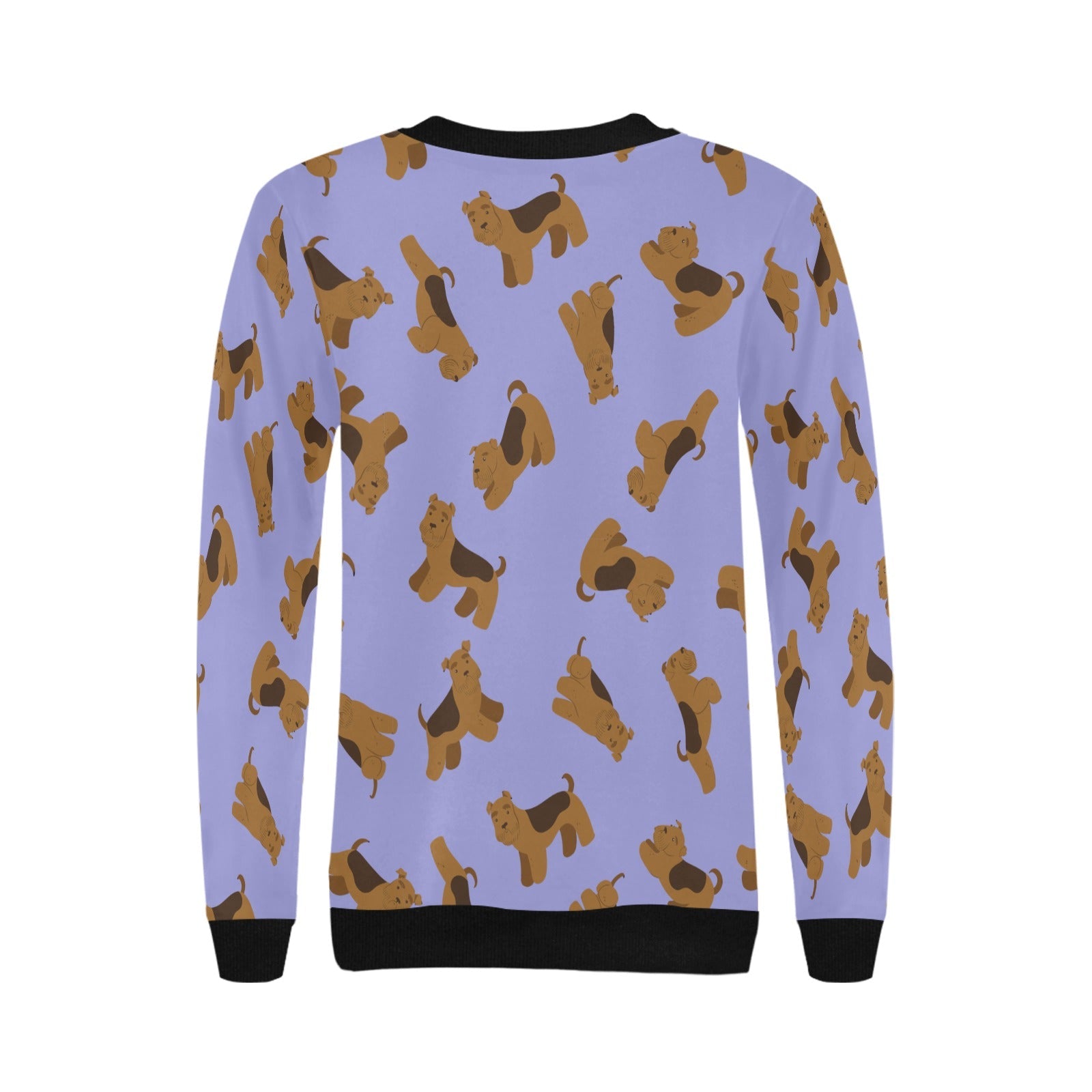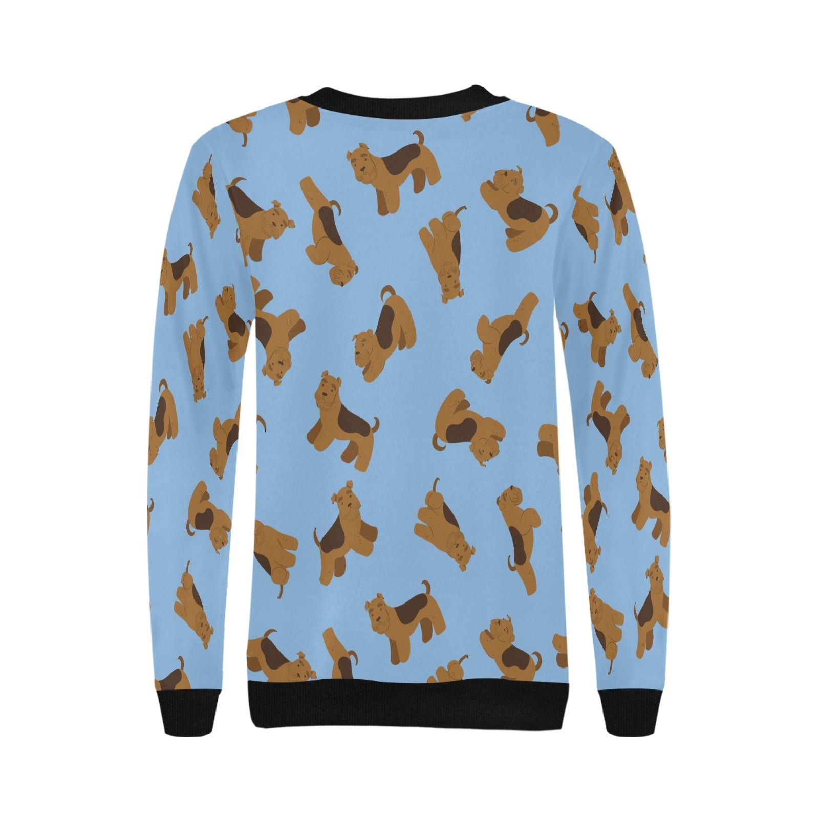 Playful Airedale Terrier Love Sweatshirt for Women-CornflowerBlue_1-XS-29