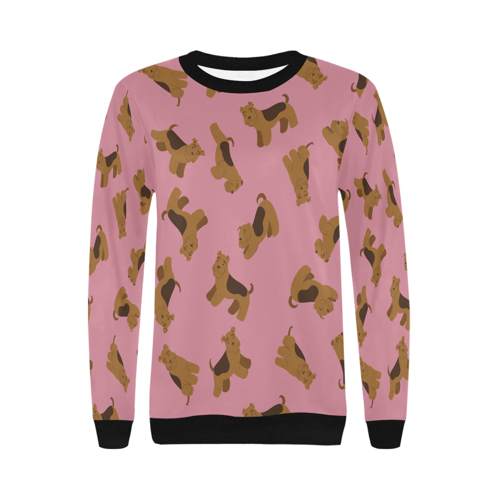 Playful Airedale Terrier Love Sweatshirt for Women-Pink-XS-2