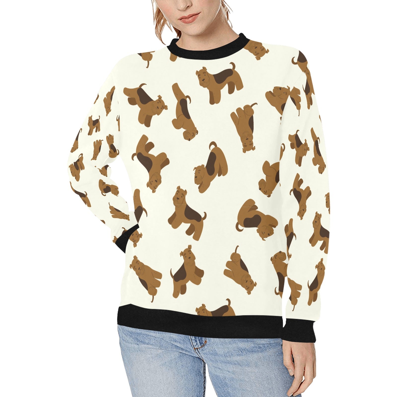 Playful Airedale Terrier Love Sweatshirt for Women-31