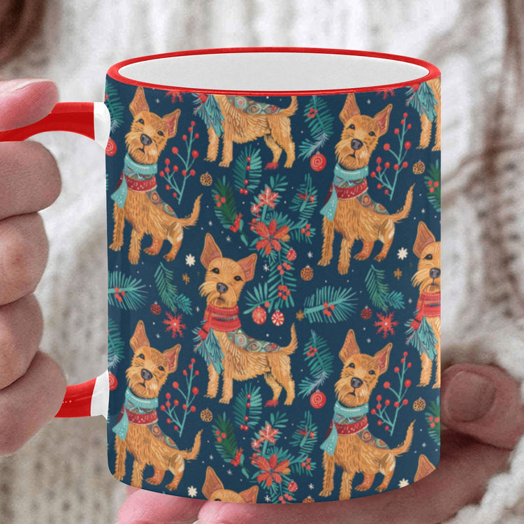 This delightful mug features playful Airedale Terriers dressed in vibrant, festive attire, bringing warmth and cheer to every sip.