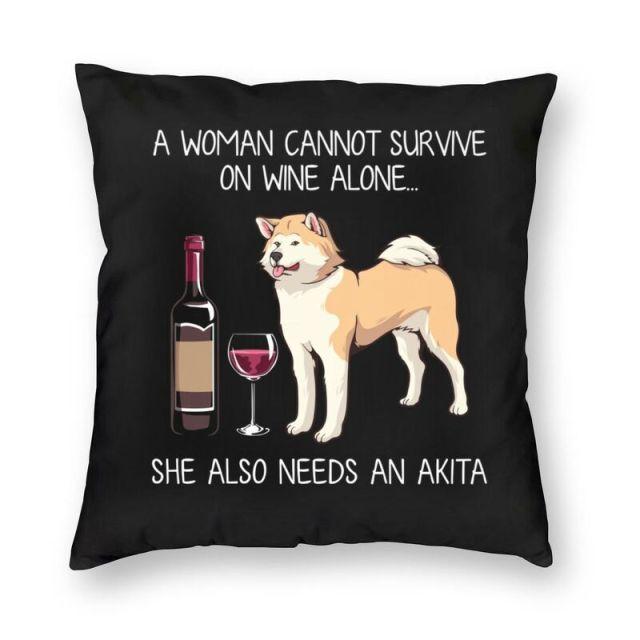 If you're an Akita Inu mom who also loves wine - then this most adorable throw pillow is for you!
