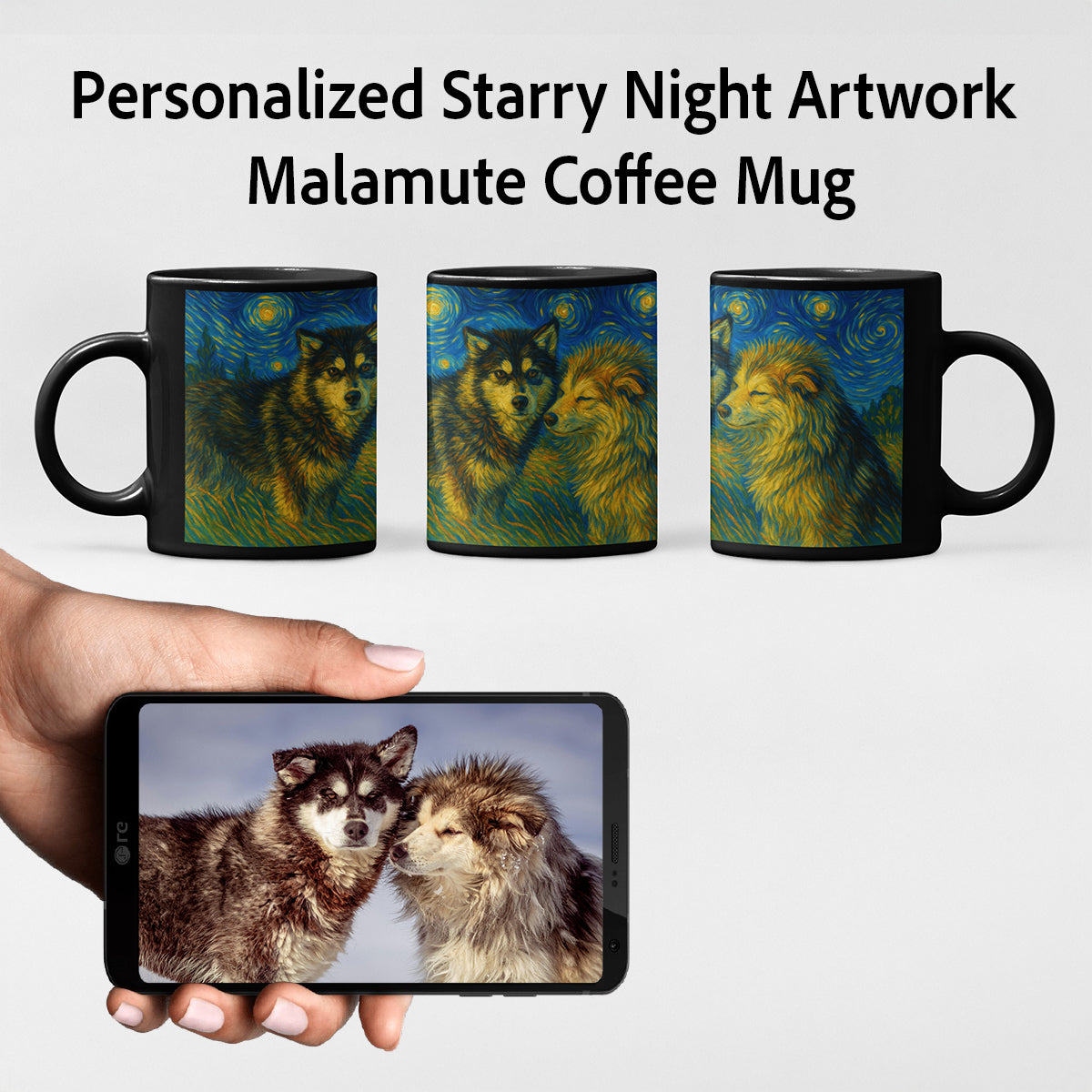 Celebrate your love for your Alaskan Malamute with a personalized Starry Night artwork coffee mug that captures the essence of your furry friend. This unique gift is perfect for dog lovers who cherish the bond with their four-legged companions.