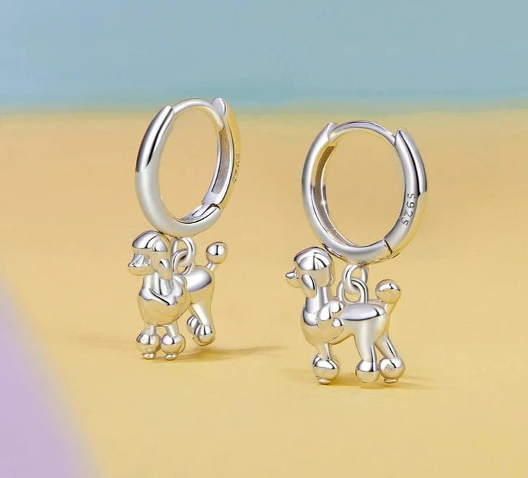 The charming poodle design dangles gracefully from the silver hoops, capturing the fluffy and curly texture of a Poodle's coat. Intricately crafted with attention to detail, these earrings are both cute and fashionable.