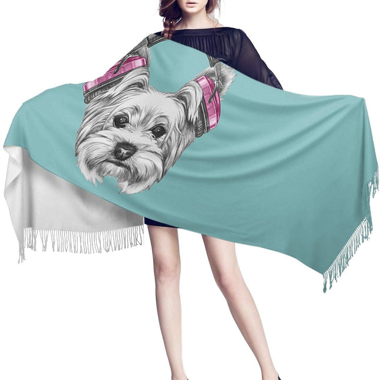 Pink Headphones Yorkshire Terrier Love Thin Shawl