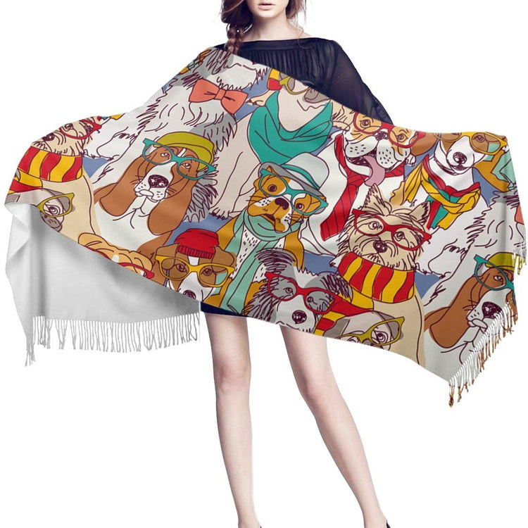 Wear this shawl for dog lovers when you go out, at the office, when you're traveling, at the movies, or anywhere you need instant doggo cheer!
