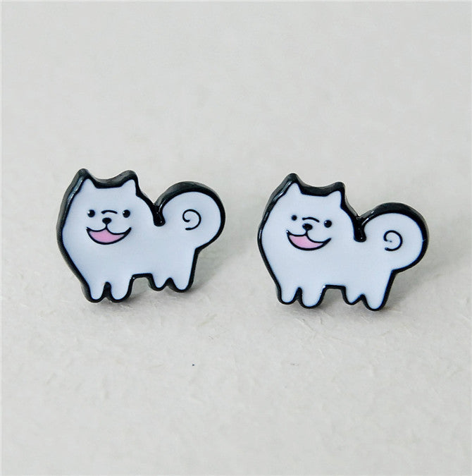 Featuring a most adorable smiling white Samoyed in enamel, with a choice of 925 Sterling Silver or Metal push-back pin earrings.