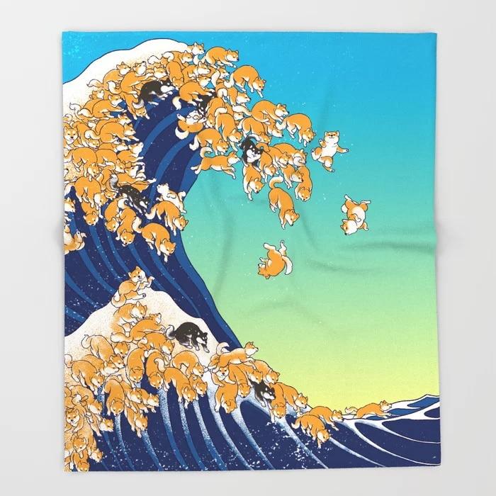 Made of super-soft, lightweight, and machine-washable coral fleece fabric. Featuring an artistic Shiba Inu tidal wave design.