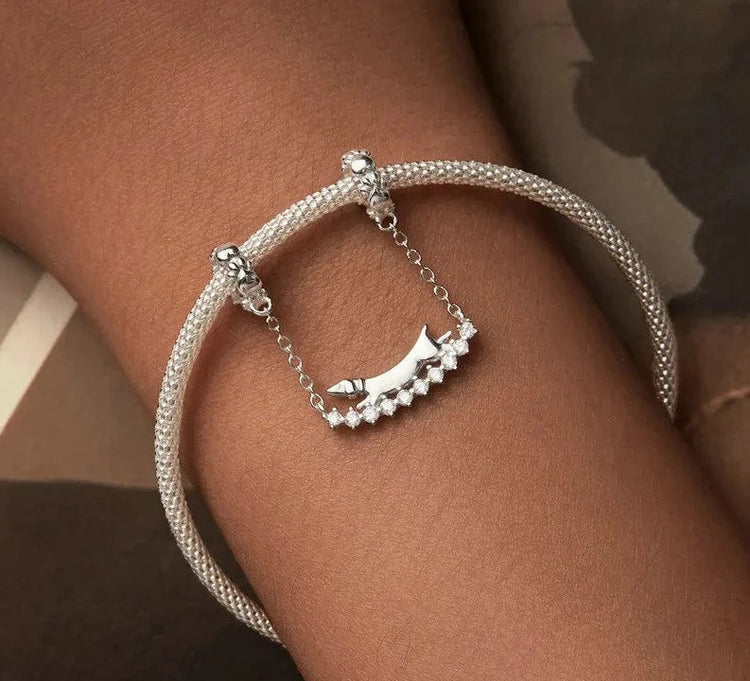 Capture the essence of your Dachshund love with the Starry Walk Dachshund Silver Pendant Charm.