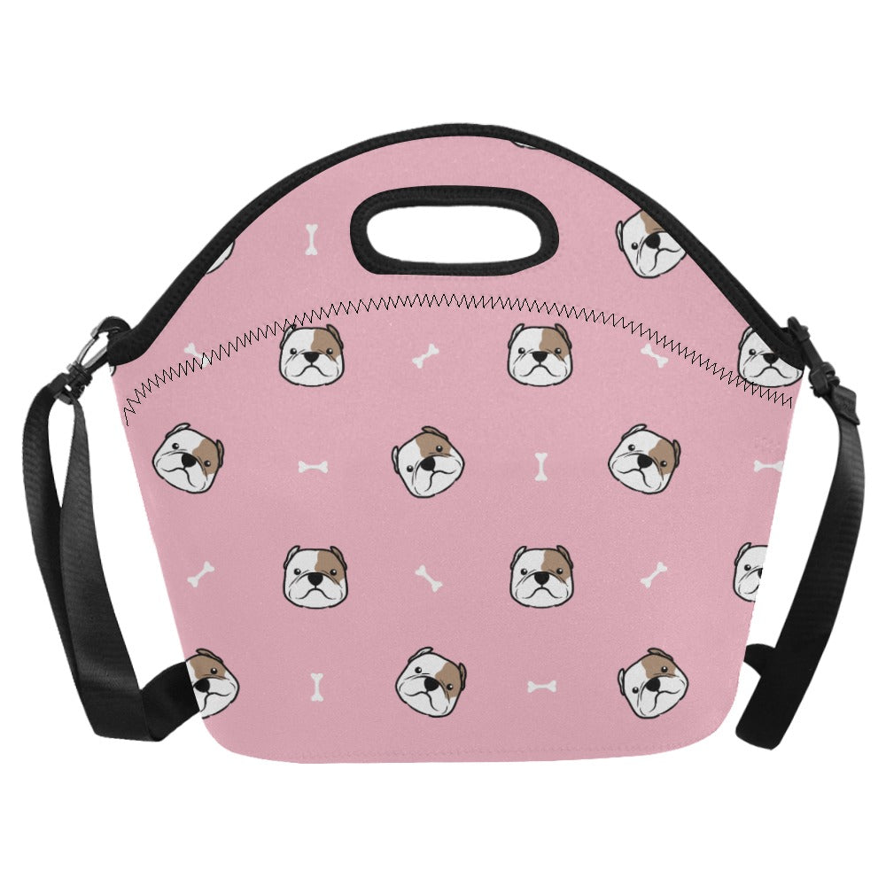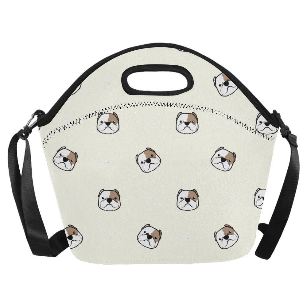 Celebrate your love for American Bullies with our Charming Bully Delight Neoprene Lunch Bag! This delightful bag features expressive American Bully faces, showcasing their unique brown and white markings and charming personalities.