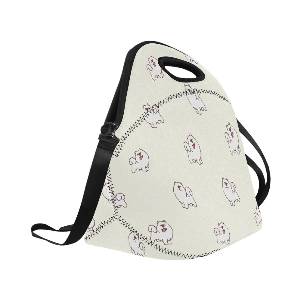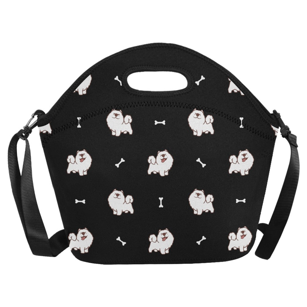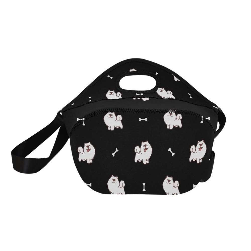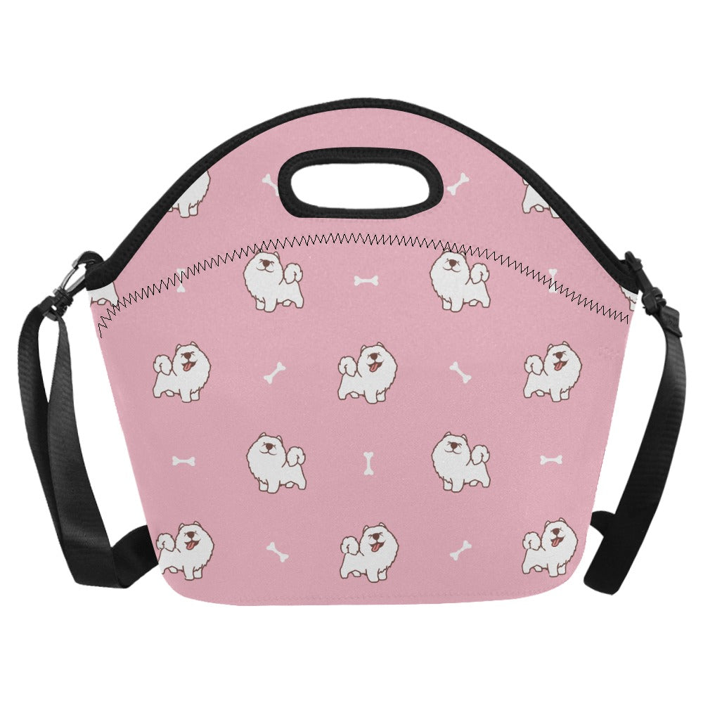Celebrate your love for the charming American Eskimo Dog with our delightful Neoprene Lunch Bag! This bag radiates joy, featuring fluffy coats, curled tails, and happy expressions, enhanced by scattered minimalist treats for a playful touch.