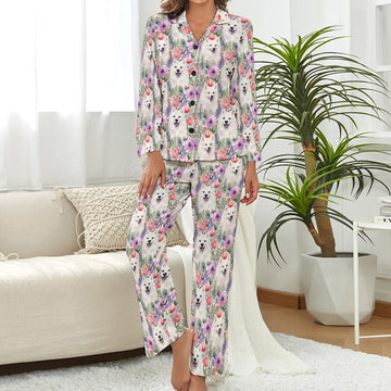 Watercolor Garden American Eskimo Dogs Pajamas Set for Women