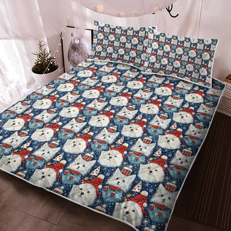 Celebrate the holiday season with the Wonderland American Eskies Christmas Quilt Blanket Bedding Set.