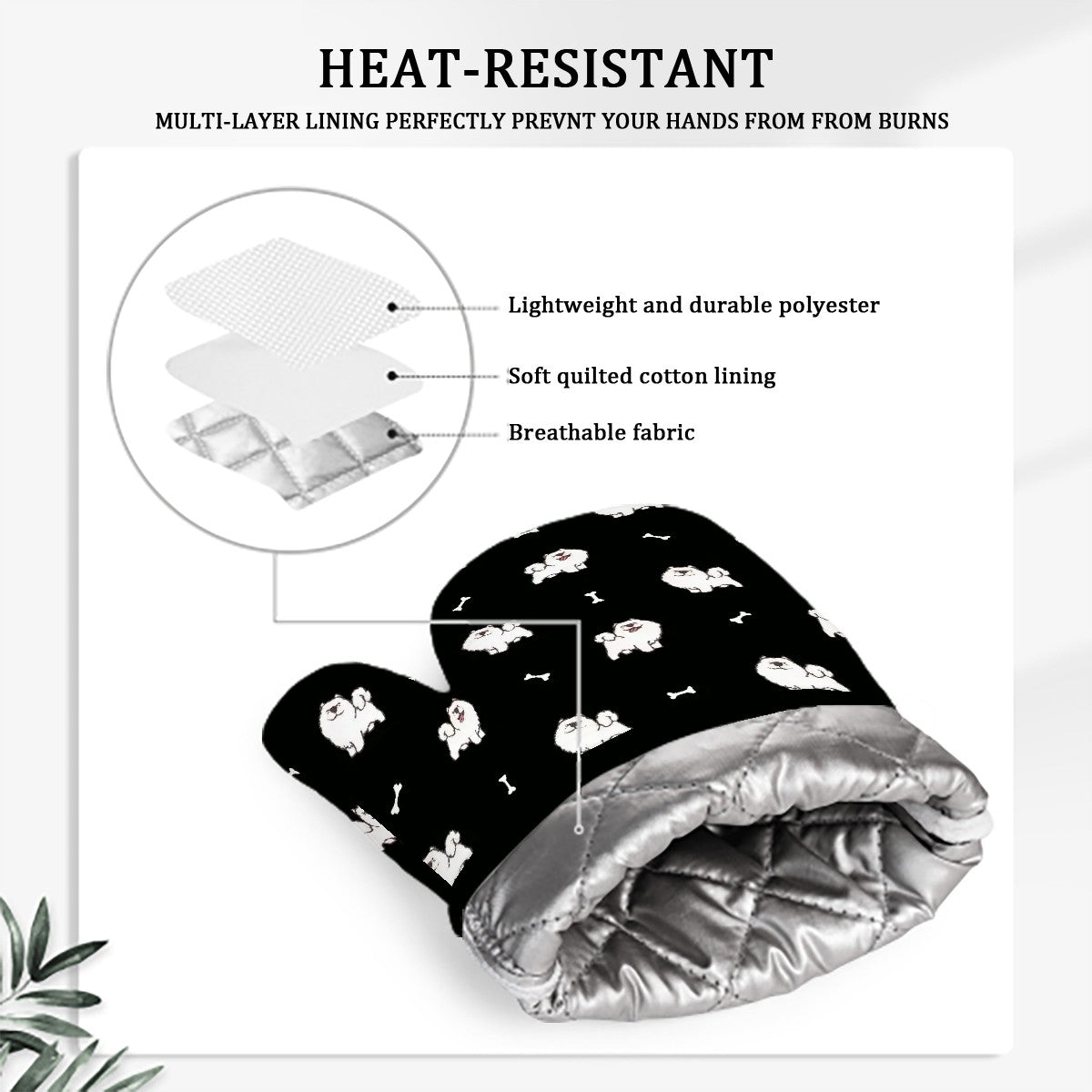You can safely handle hot dishes with the non-slip silicone grip on the glove palm. These durable accessories make baking cookies or grilling dinner a much safer and cuter experience.