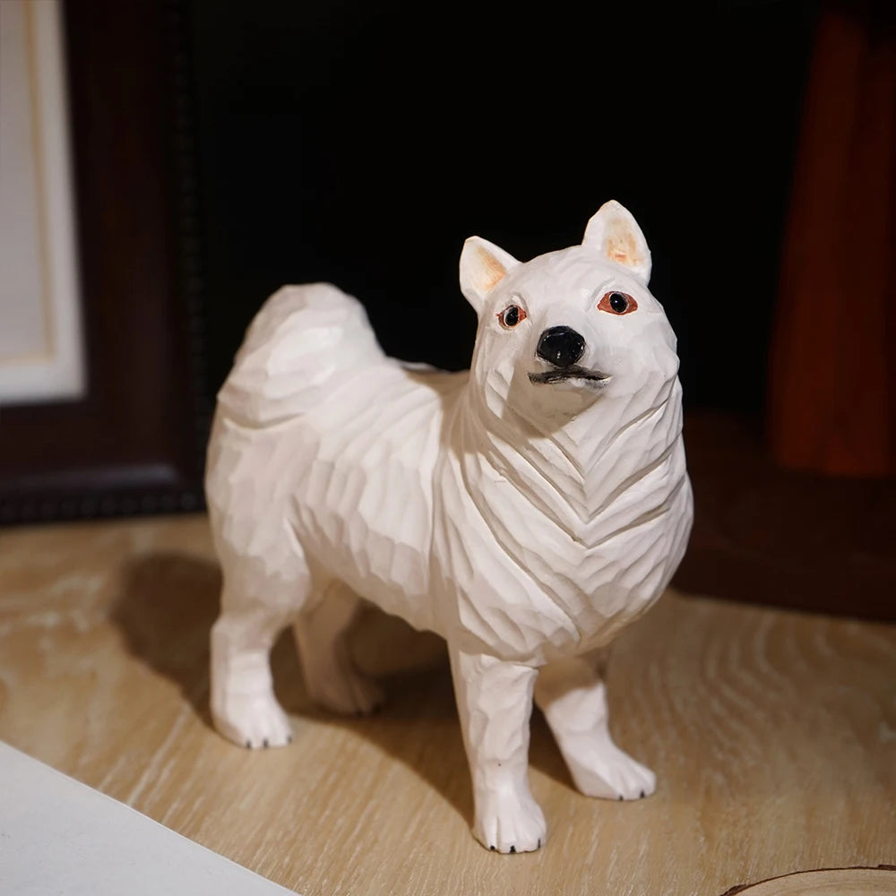 Celebrate the love for your American Eskimo Dog with our exquisite Handmade Wood Carved Small Statue Figurine.