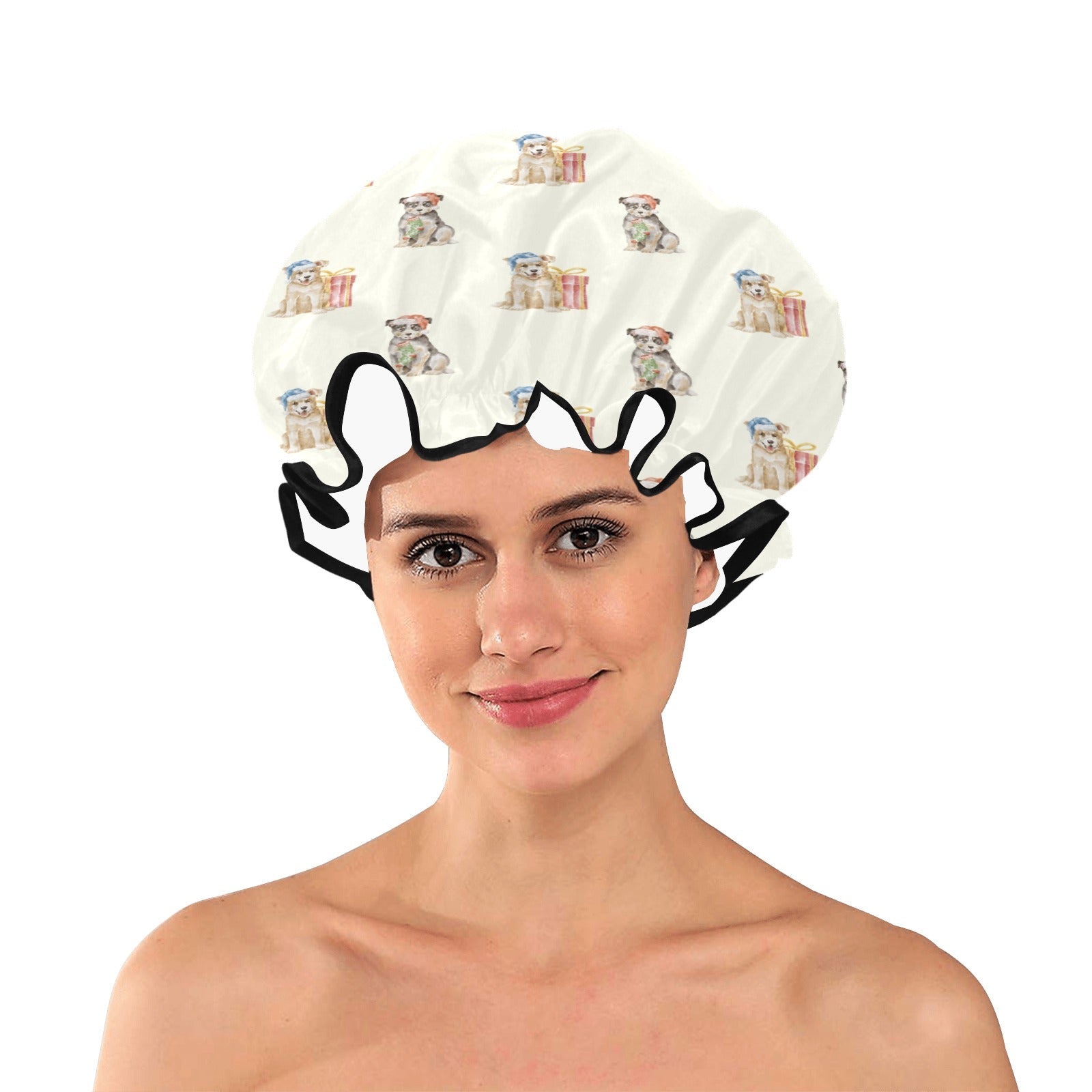 Watercolor Australian Blue Heeler Puppies Christmas Reusable Shower Caps-Accessories-Accessories, Blue Heeler, Christmas, Dog Mom Gifts-Ivory White-ONE SIZE-8