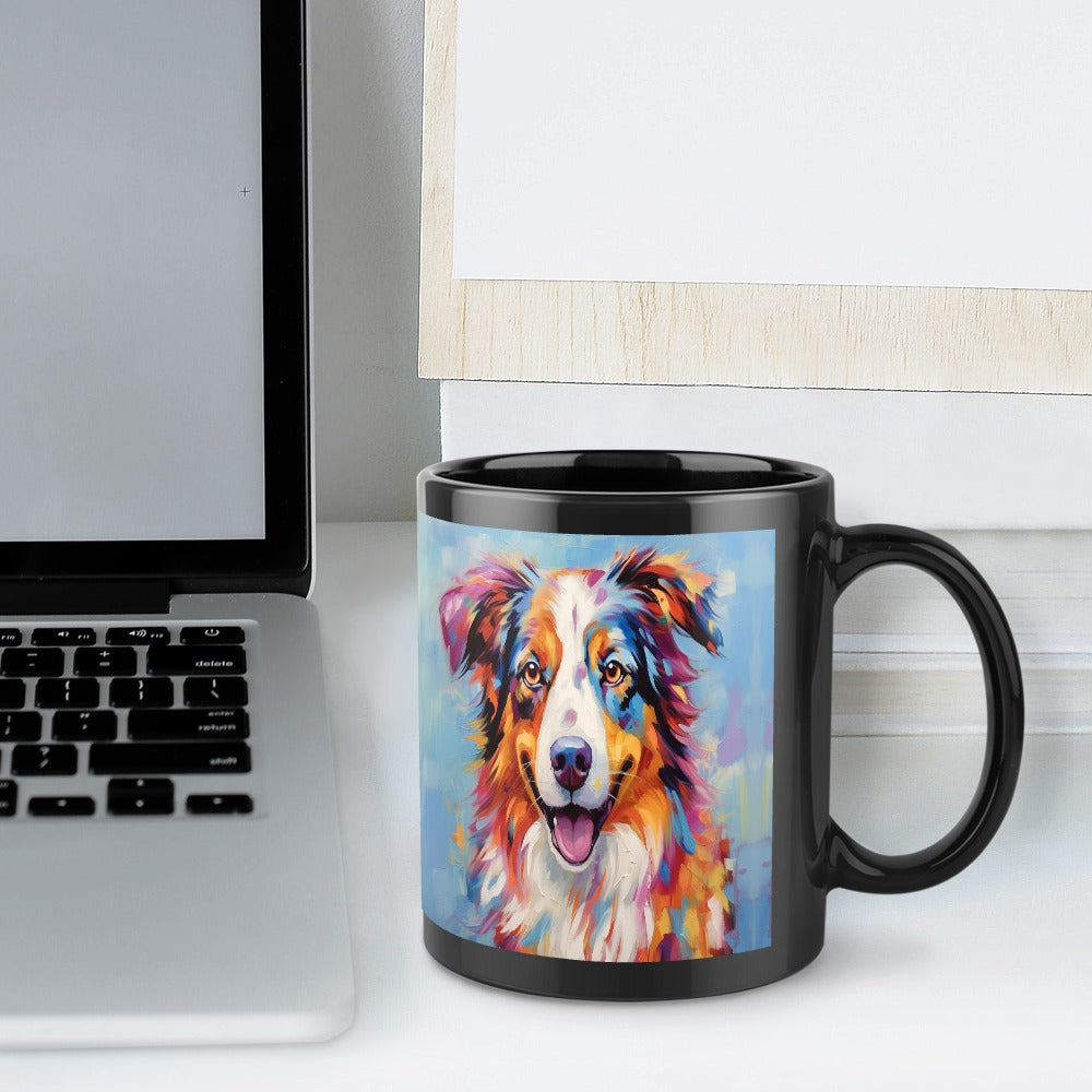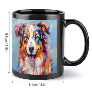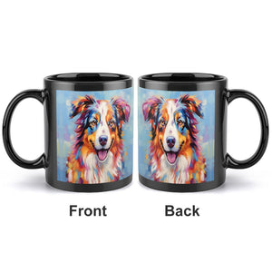 This stunning mug features a lively portrayal of an Aussie, capturing their energetic spirit and friendly nature in a burst of colors.