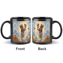 This stunning mug features a beautifully illustrated Australian Shepherd against a serene desert sunset, capturing the breed's majestic spirit.