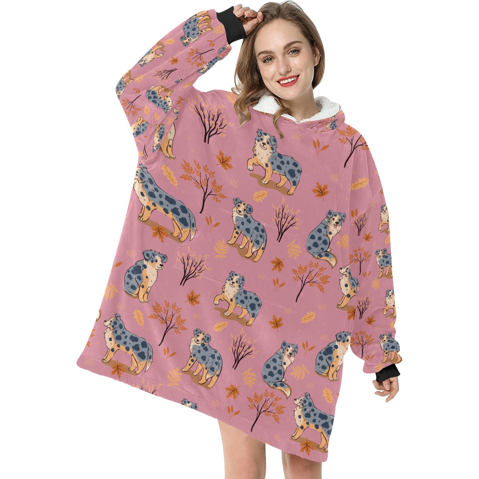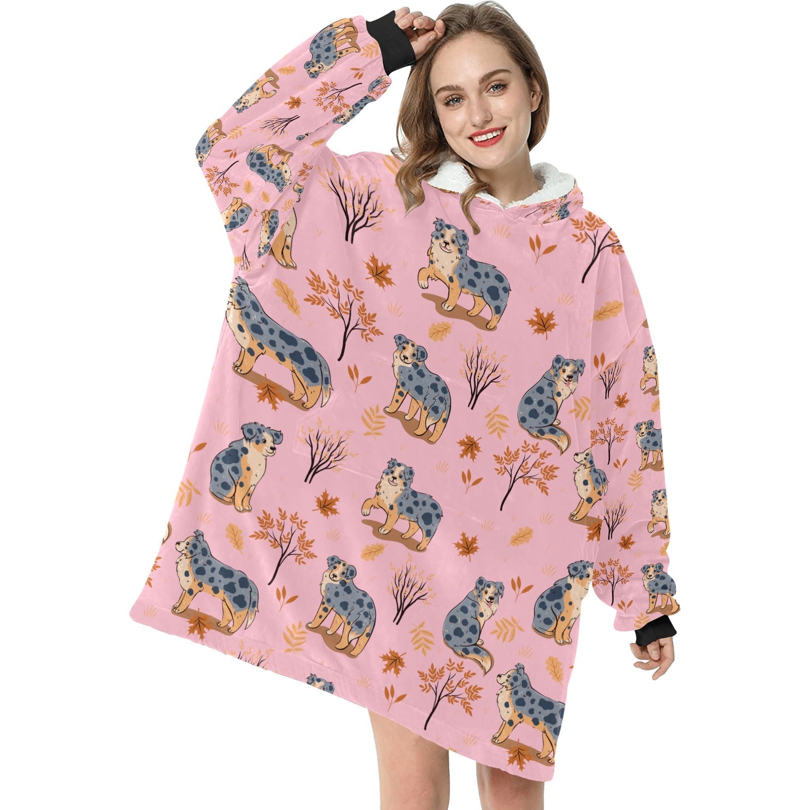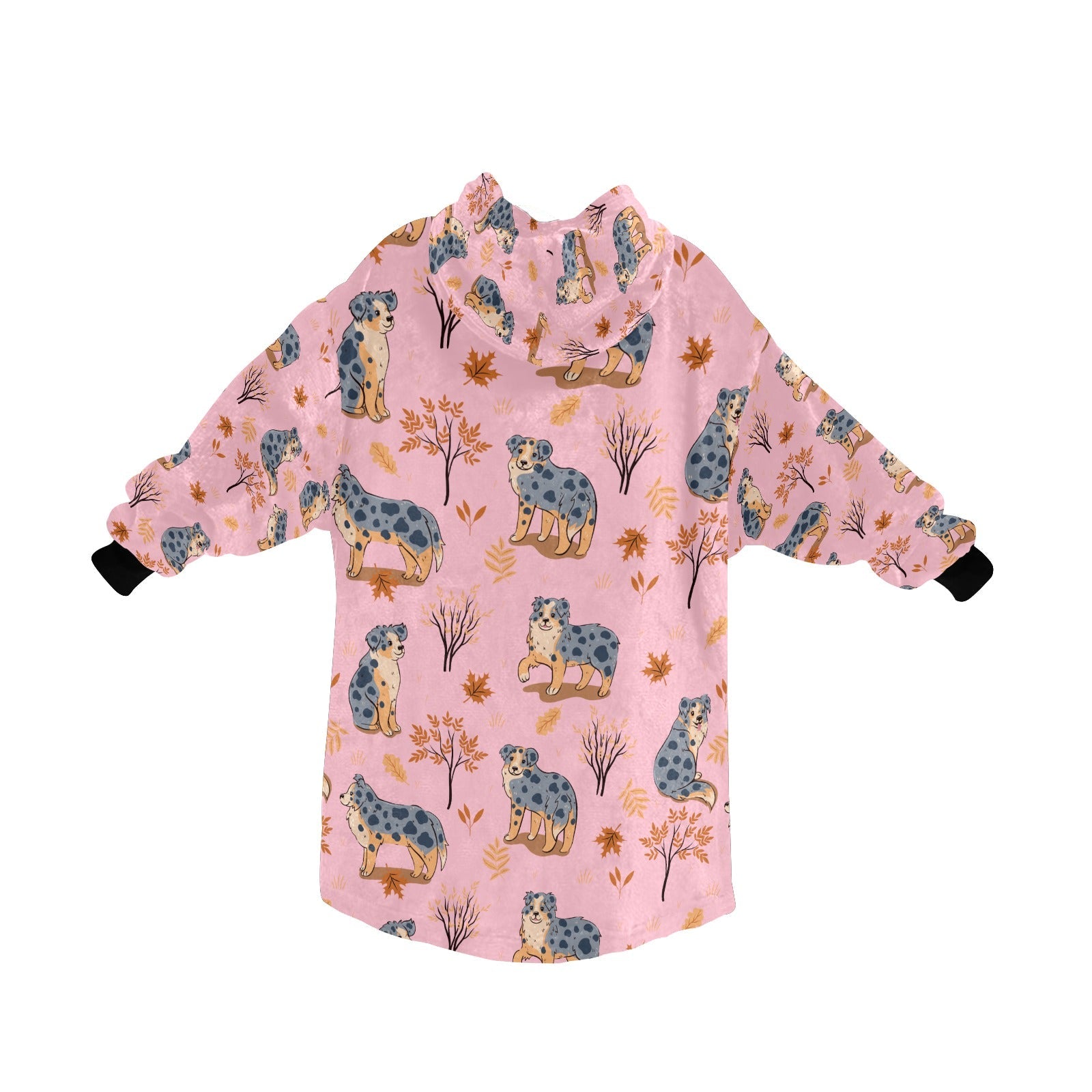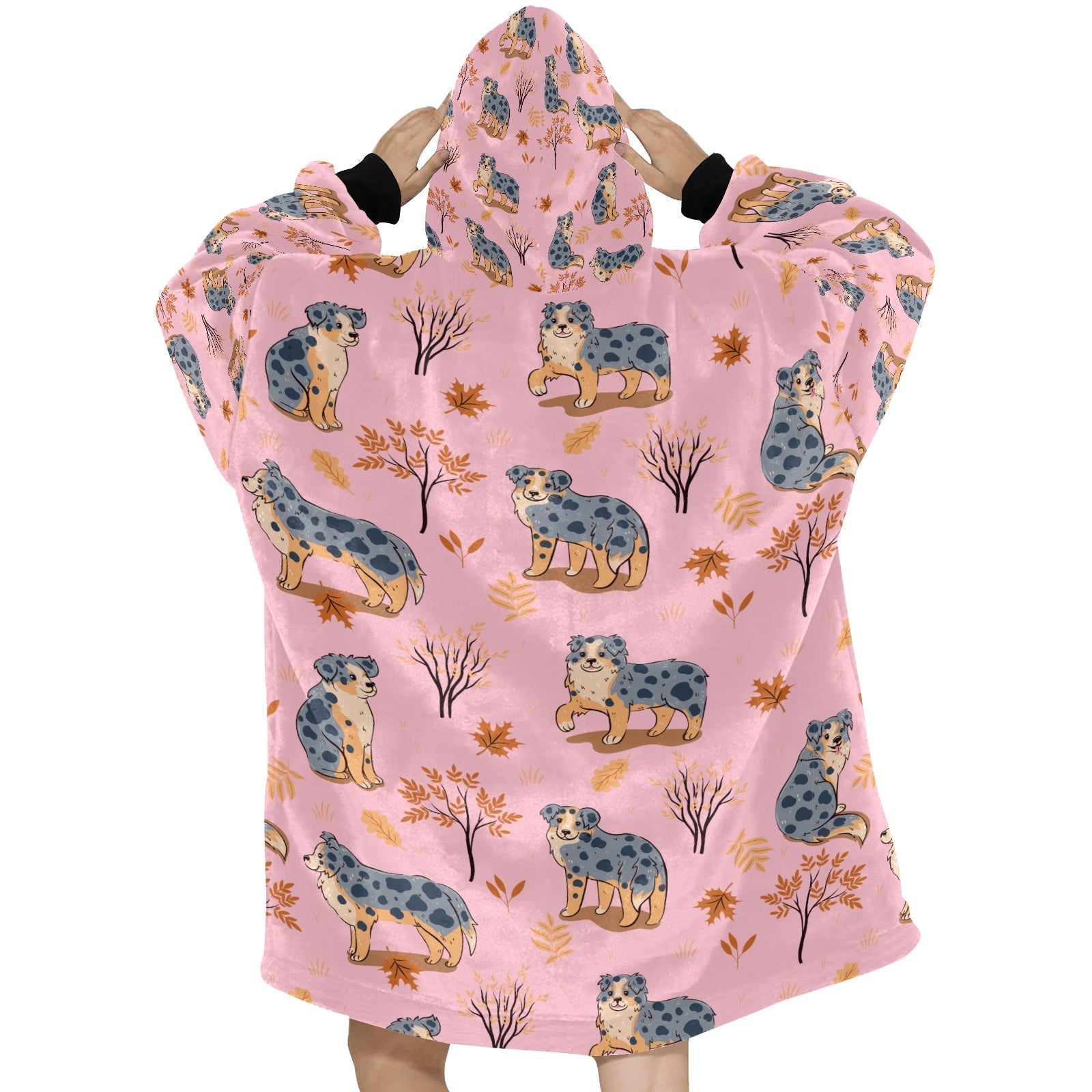 Flower Garden Australian Shepherd Blanket Hoodie-Pink-ONE SIZE-6