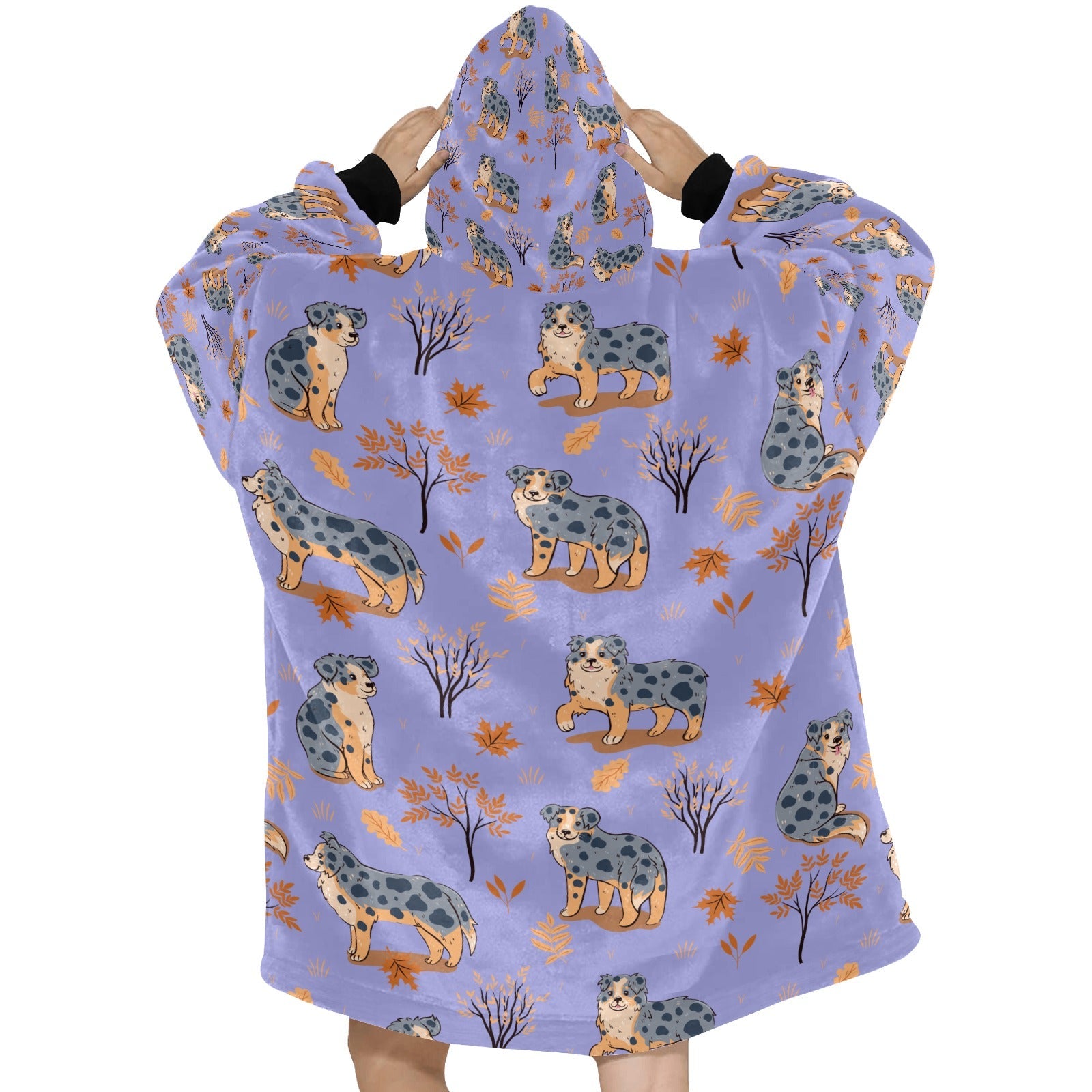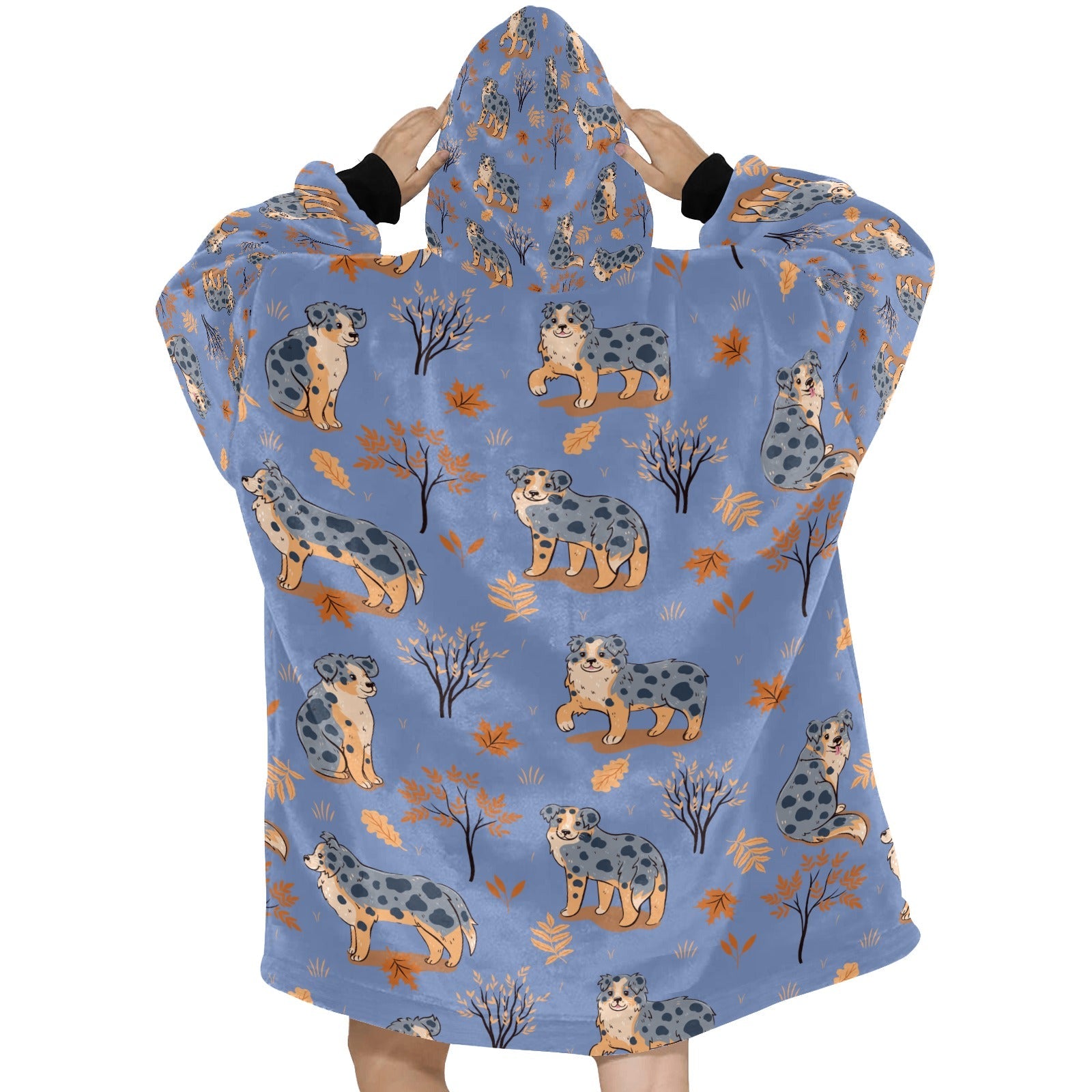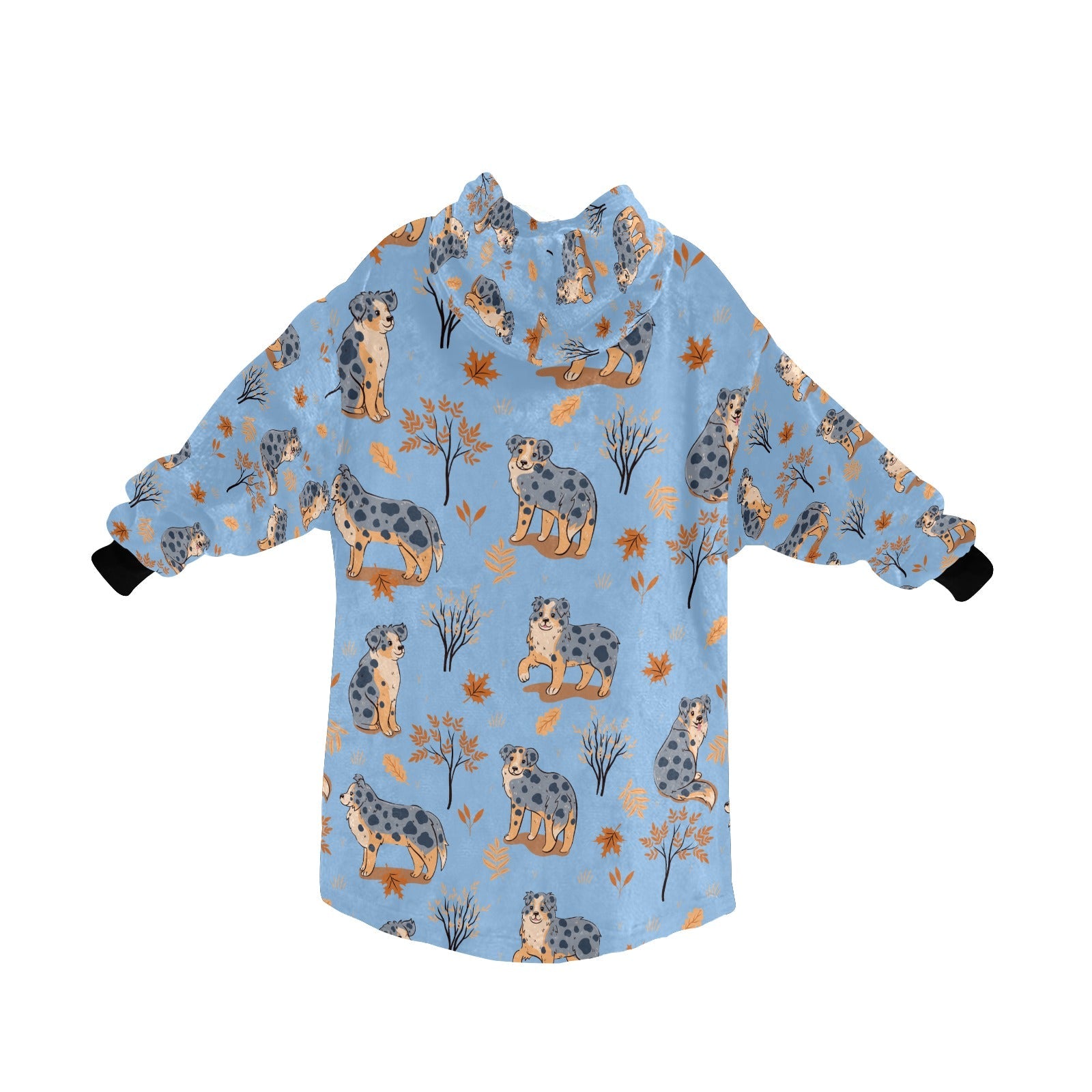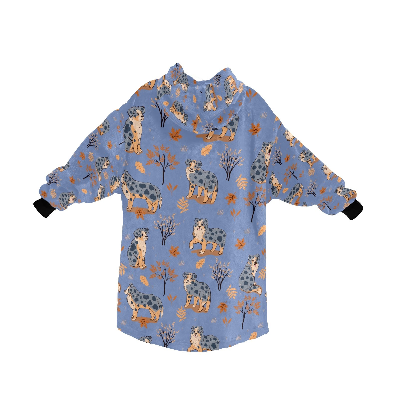 Flower Garden Australian Shepherd Blanket Hoodie-CornflowerBlue-ONE SIZE-17