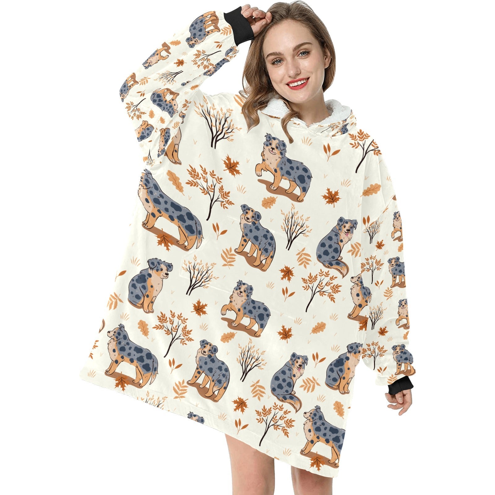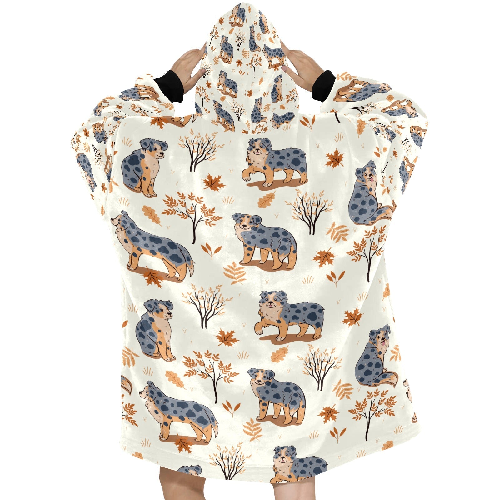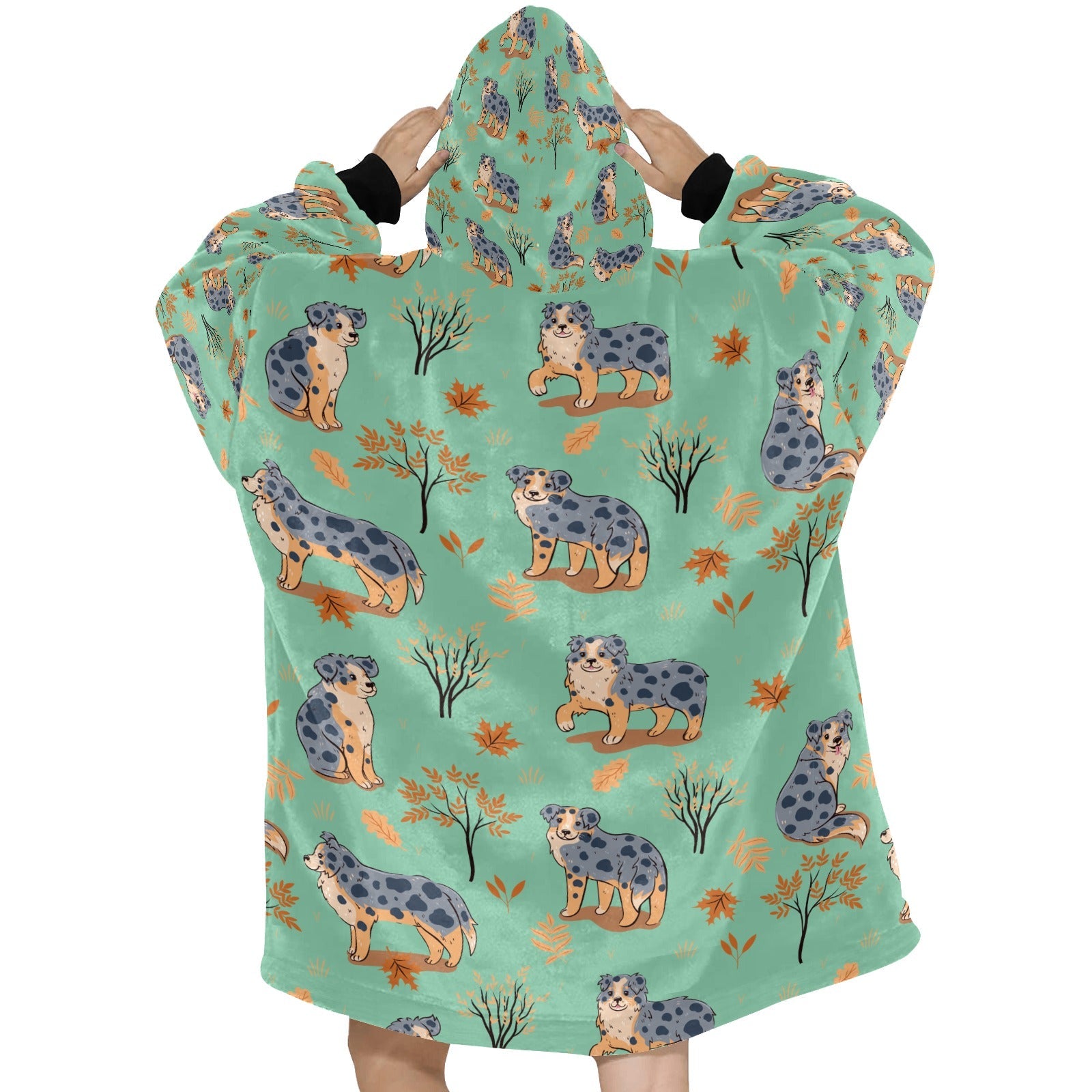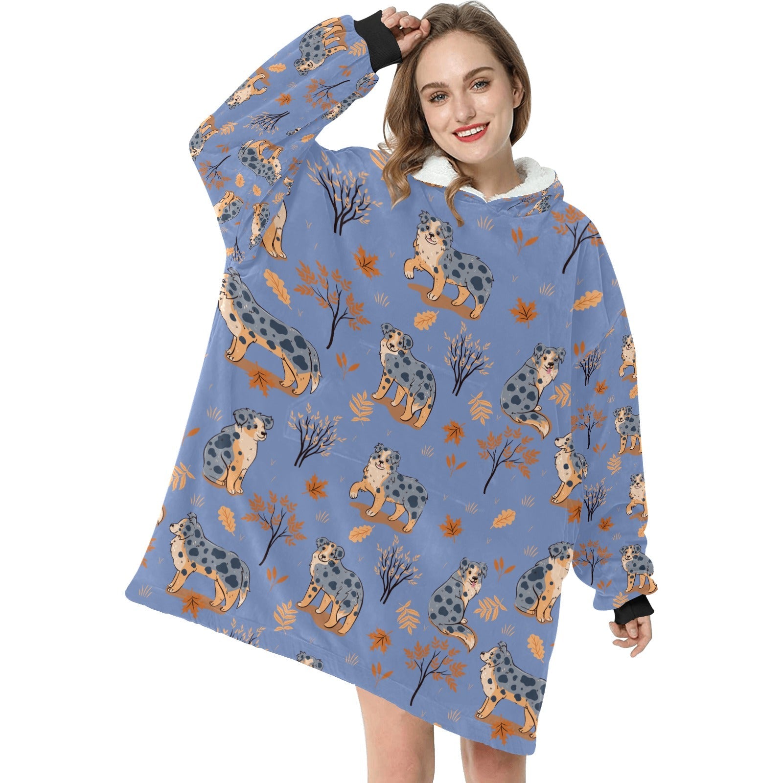Flower Garden Australian Shepherd Blanket Hoodie-CornflowerBlue-ONE SIZE-17