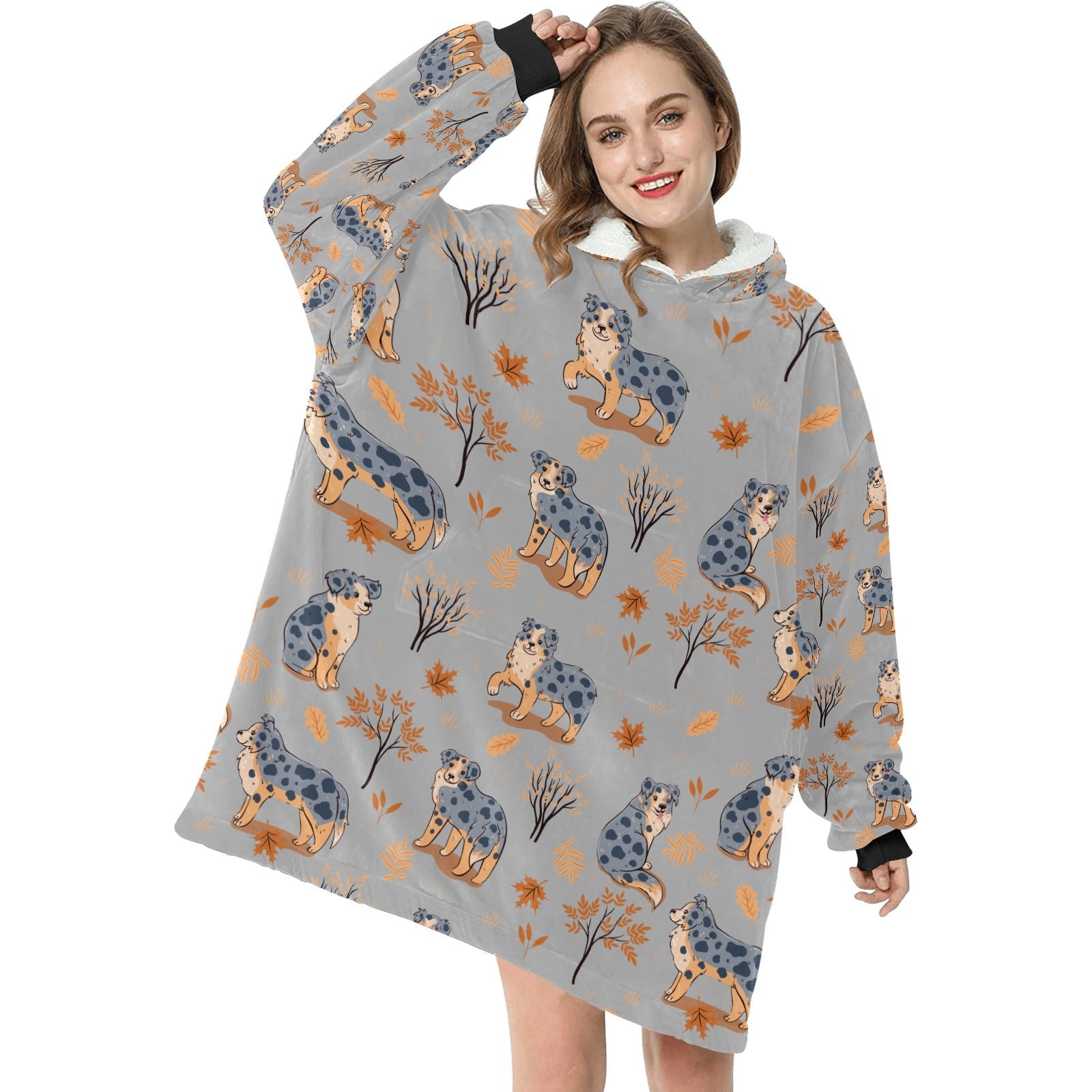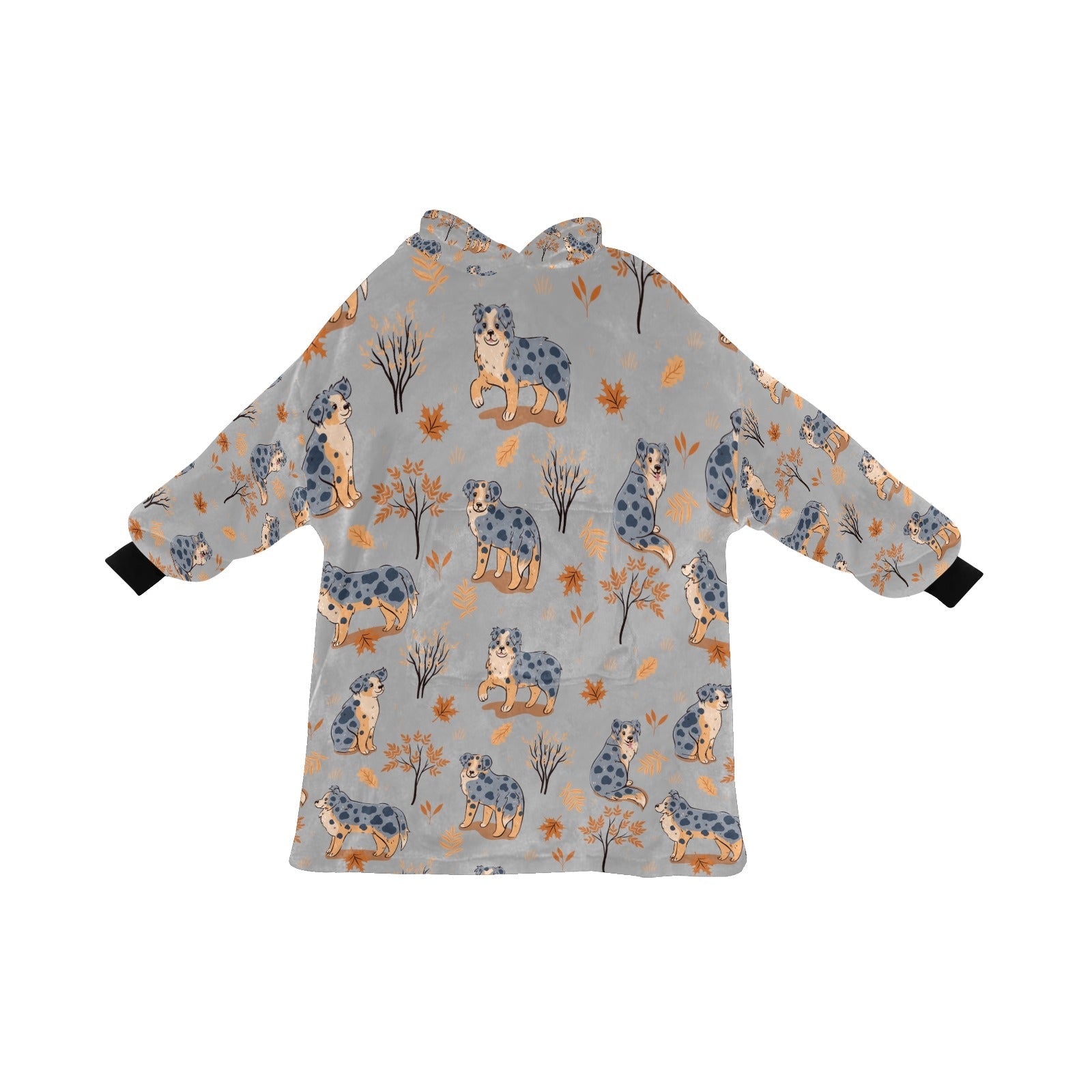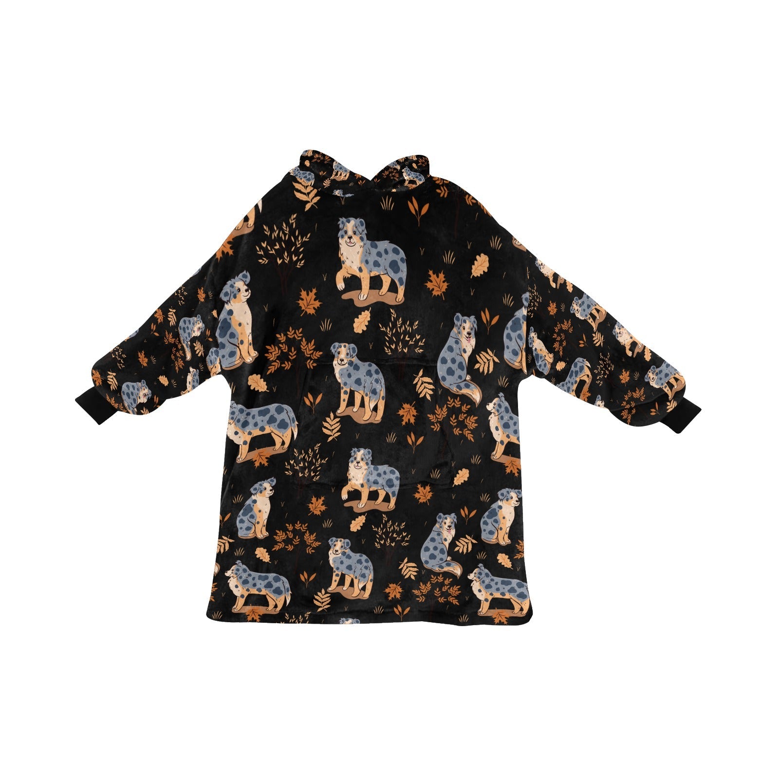 Flower Garden Australian Shepherd Blanket Hoodie-DarkGray-ONE SIZE-30