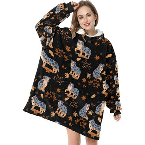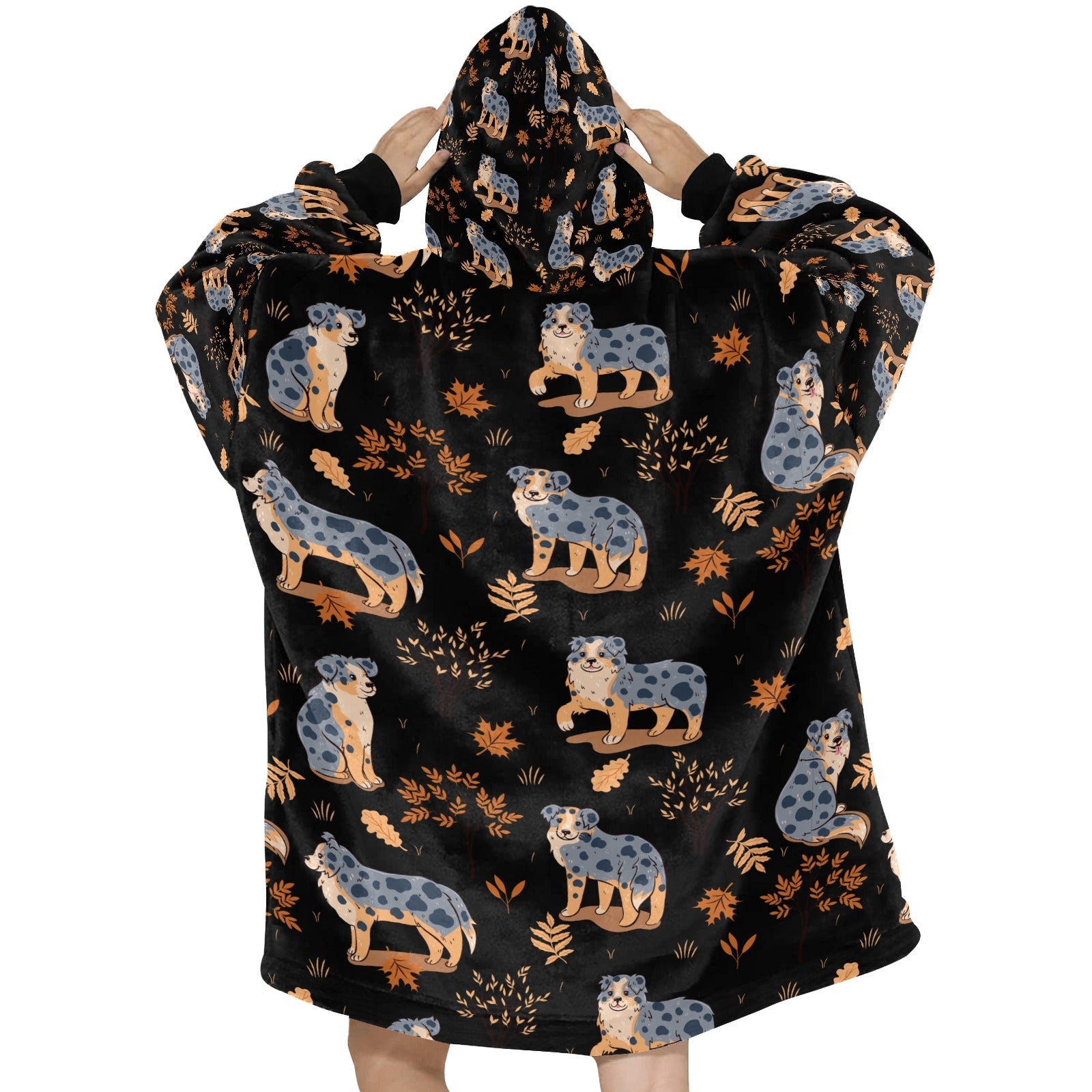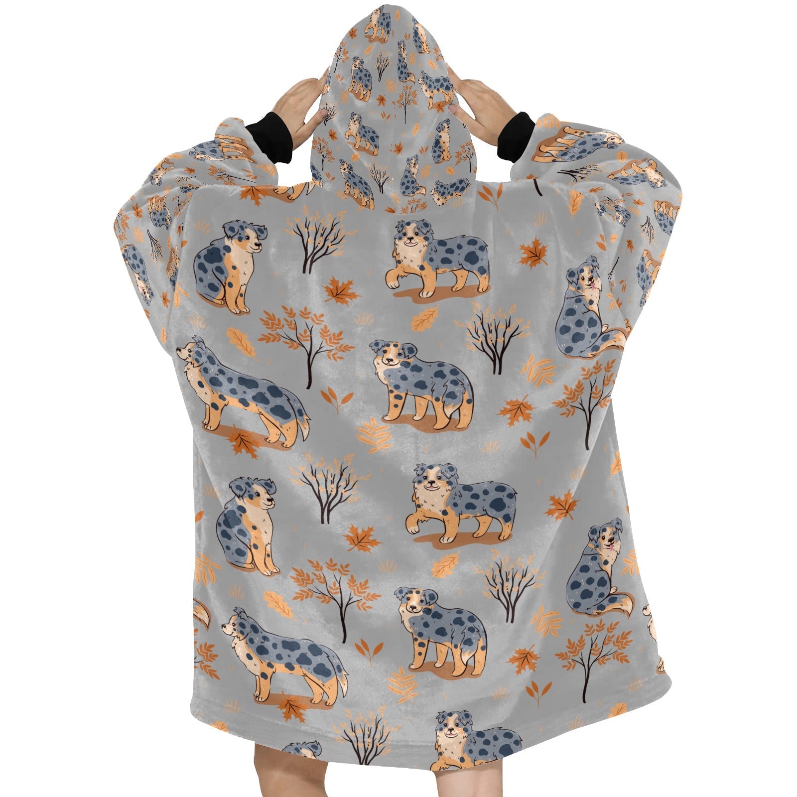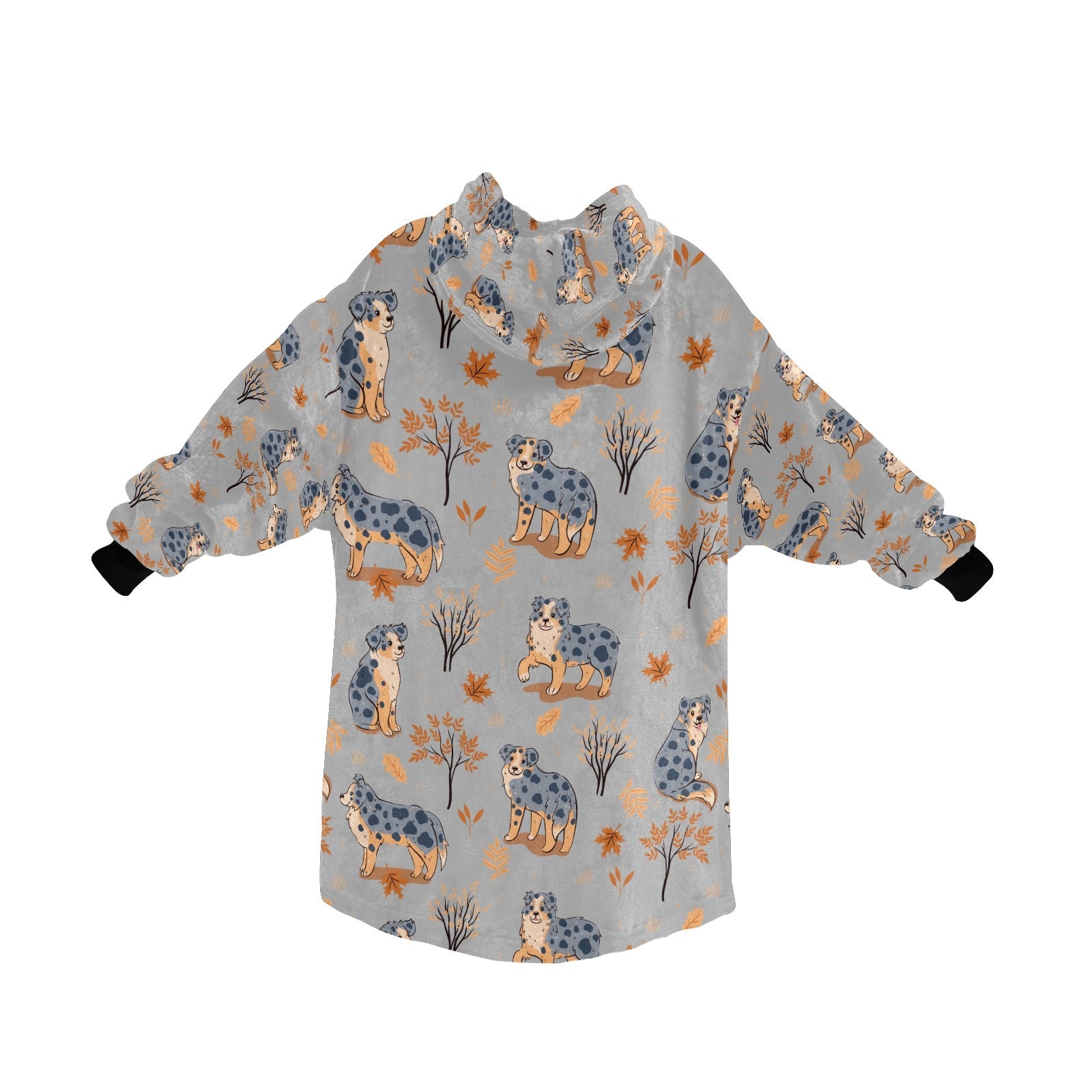 Flower Garden Australian Shepherd Blanket Hoodie-DarkGray-ONE SIZE-30