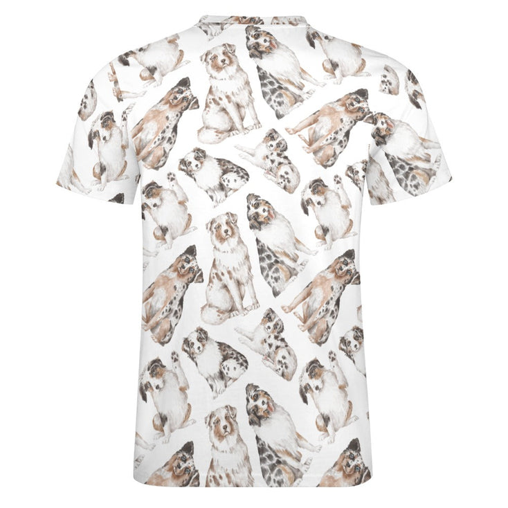 Watercolor Celebration Australian Shepherds Men's Cotton T-Shirt
