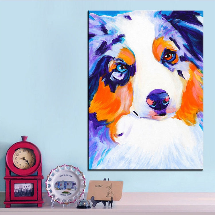 Oil Portrait Australian Shepherd Canvas Print Posters