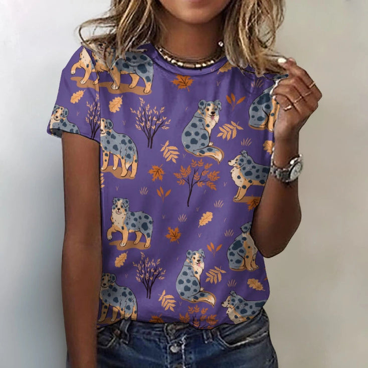 Flower Garden Australian Shepherd All Over Print Women's Cotton T-Shirt