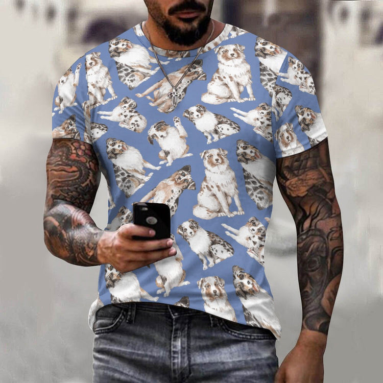 Australian Shepherd T Shirt for Men - Watercolor Celebration Australian Shepherds