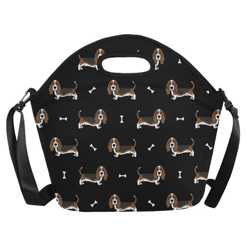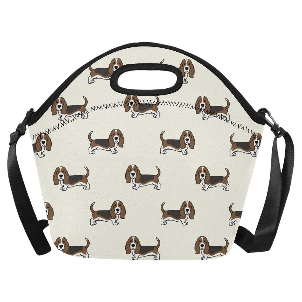 Celebrate your love for Basset Hounds with our charming Neoprene Lunch Bag, designed to keep your meals as delightful as your furry friend. This delightful design showcases Basset Hounds in a classic stance, capturing their gentle and friendly nature.
