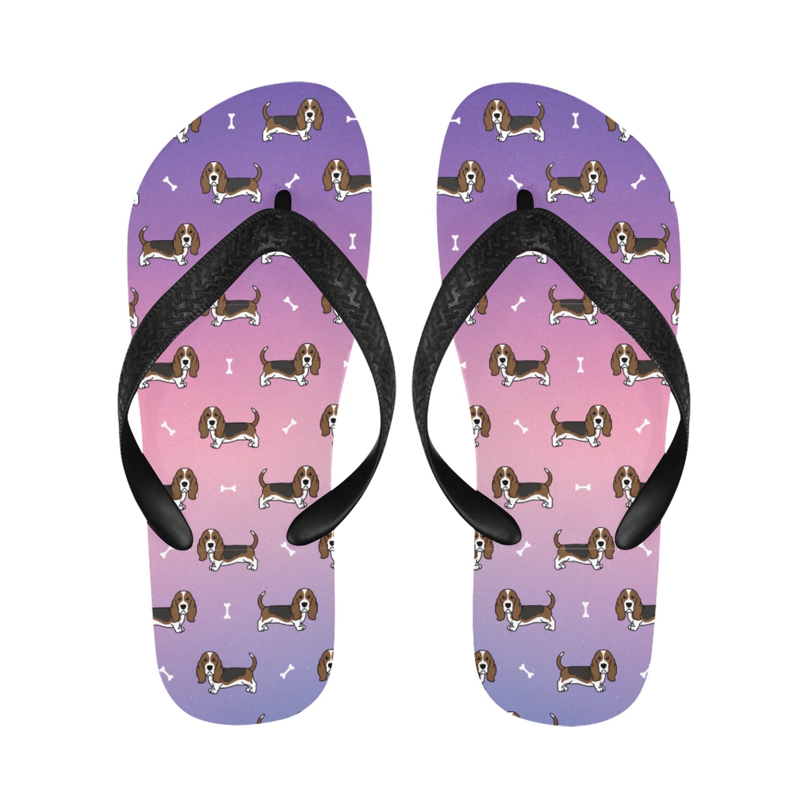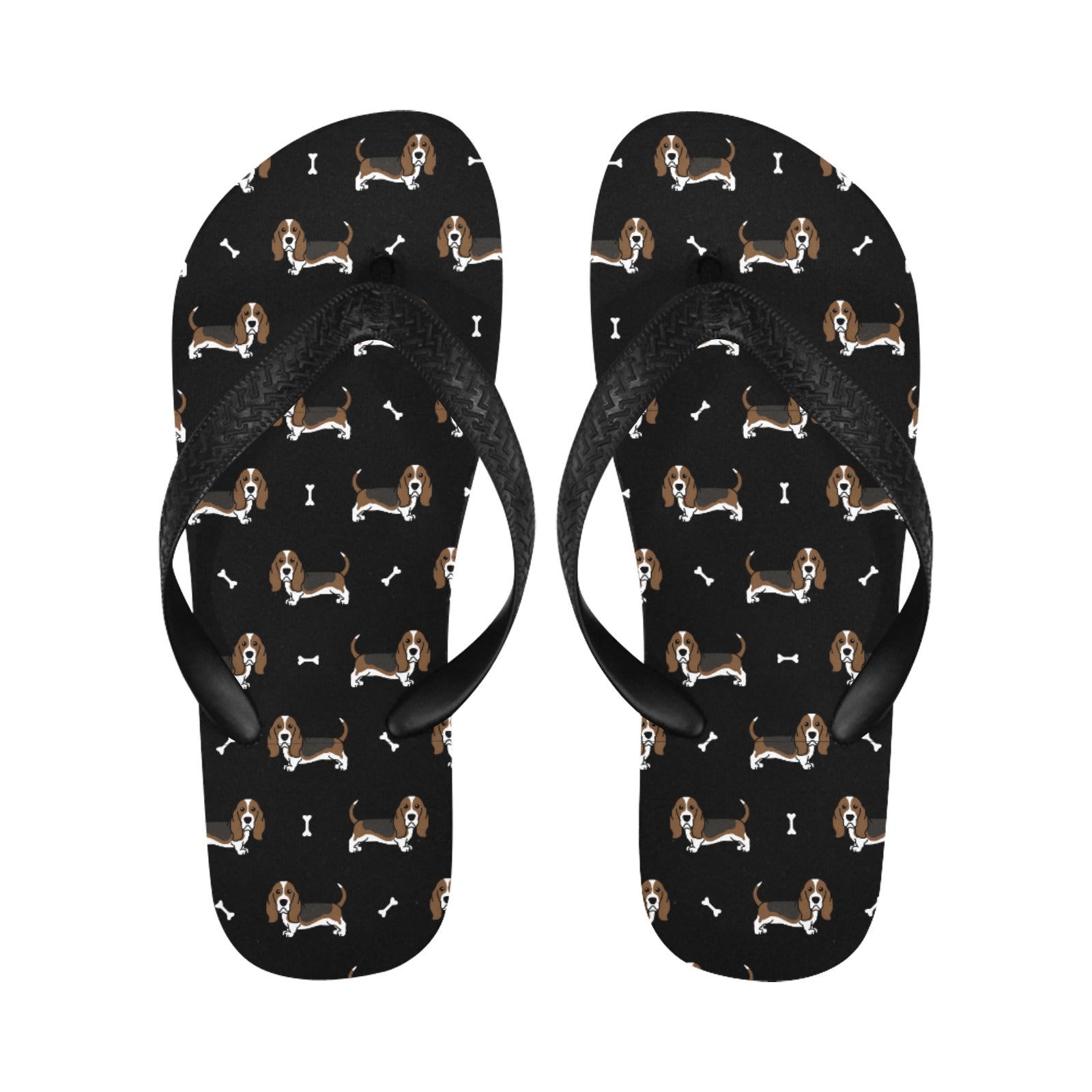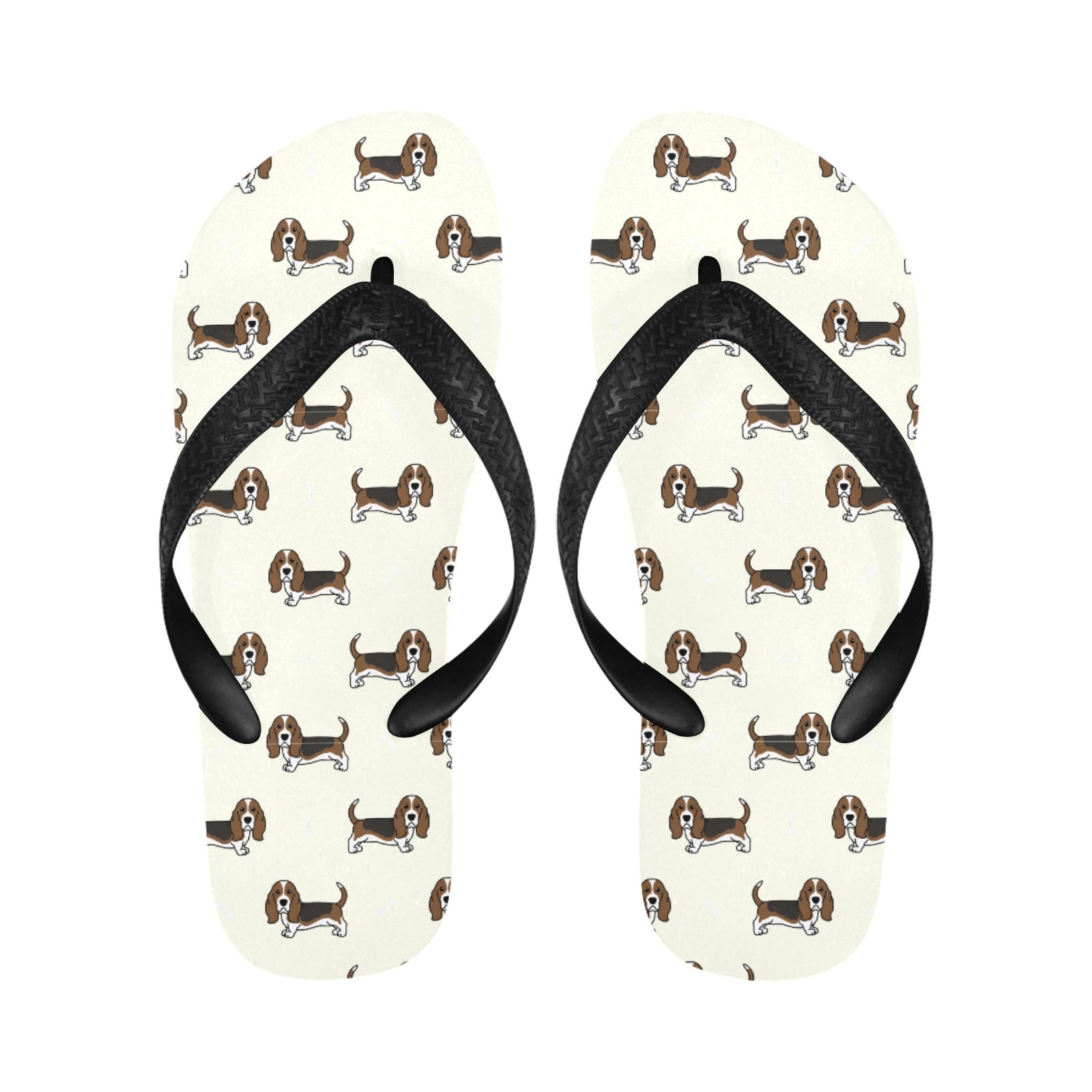 These delightful slippers feature charming Basset Hounds in a classic stance, showcasing their long ears and soulful eyes.