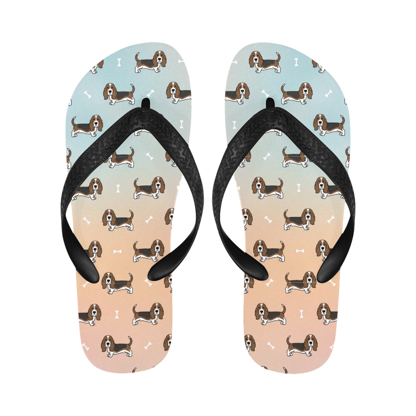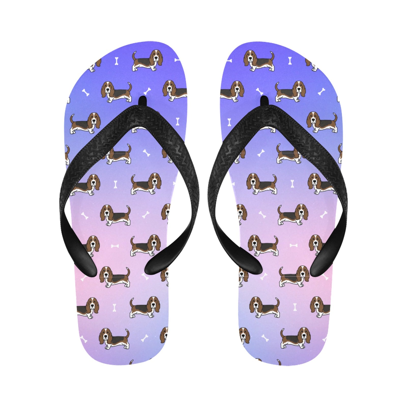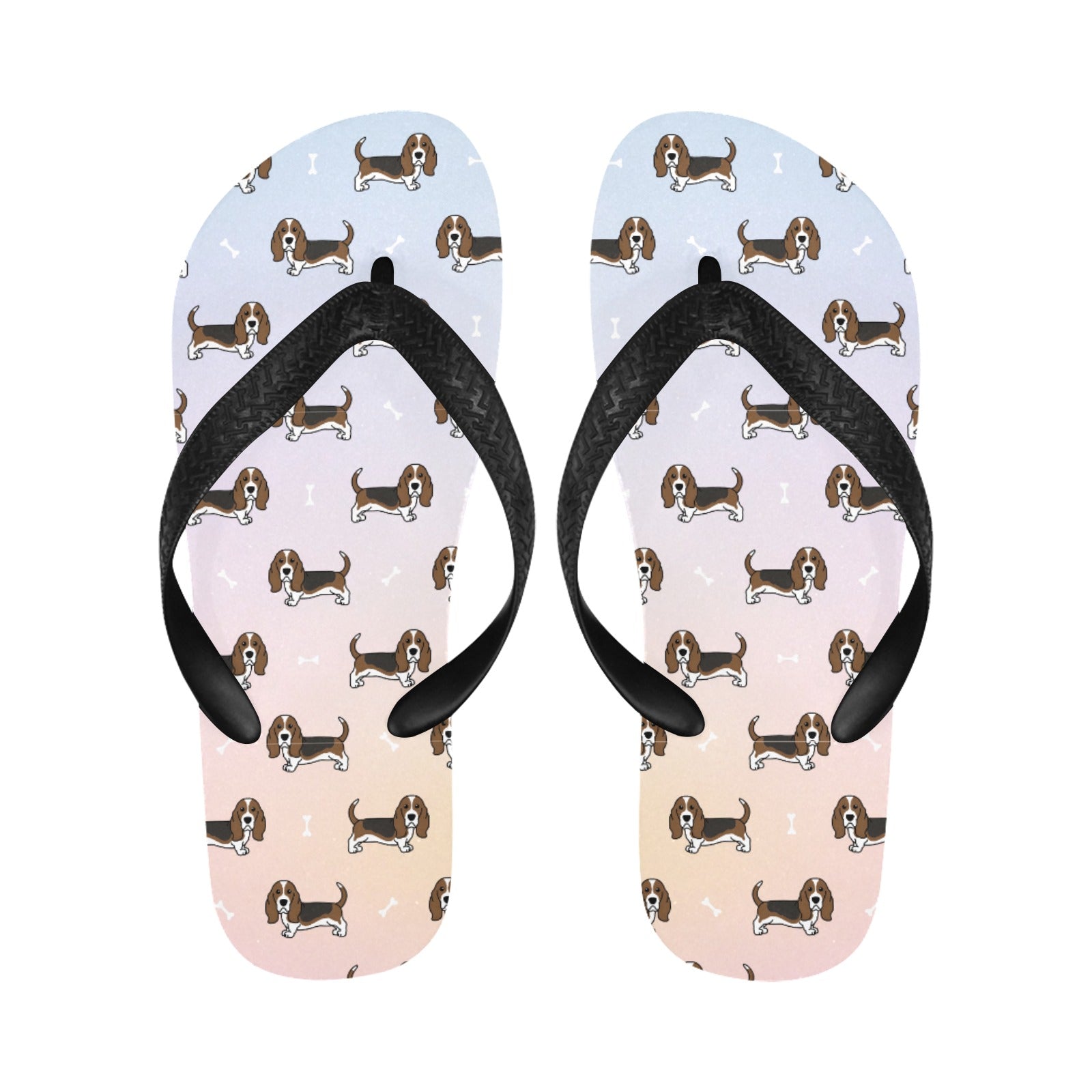 These delightful slippers feature charming Basset Hounds in a classic stance, showcasing their long ears and soulful eyes.