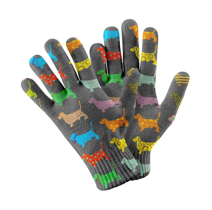 Colorful Basset Hound Silhouettes Touch Screen Gloves-Accessories-Accessories, Basset Hound, Dog Dad Gifts, Dog Mom Gifts, Gloves-Gray-4