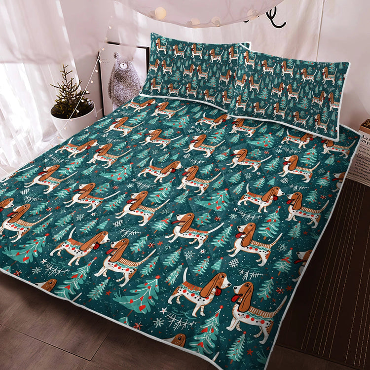 Wrap yourself in holiday cheer with the Holly Jolly Basset Hounds Christmas Quilt Blanket Bedding Set!