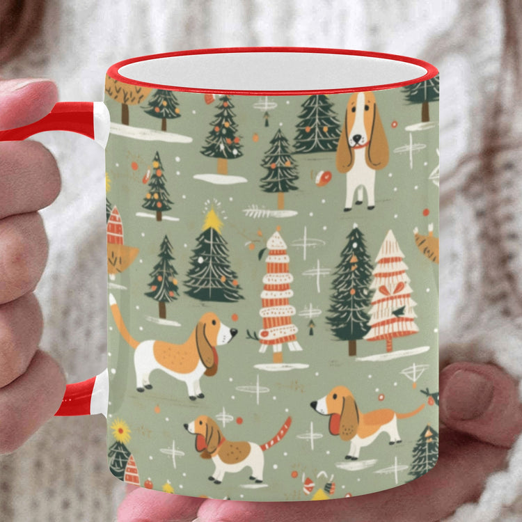 Christmas Holiday Basset Hounds Coffee Mug