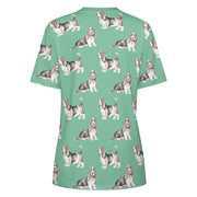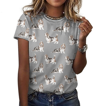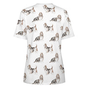 Celebrate your love for Basset Hounds with our Watercolor Elegance Basset Hounds Women's Cotton T-Shirt.